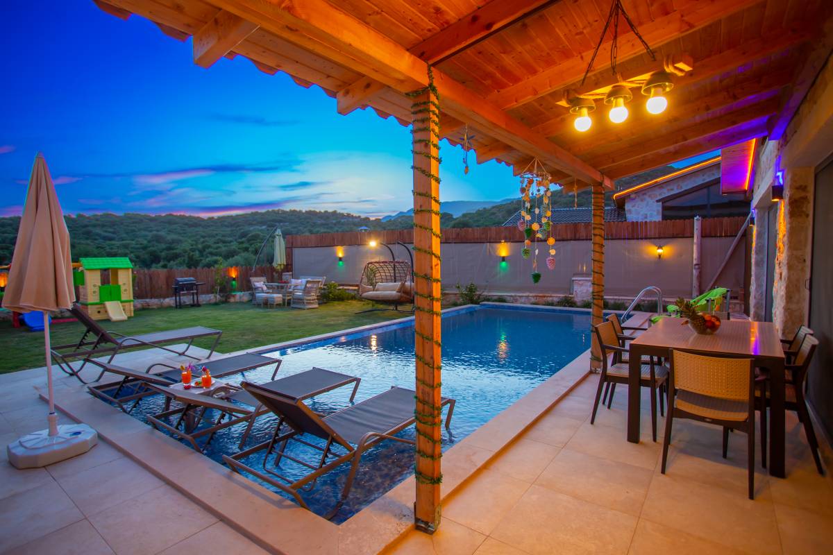 Kaş, Bayındır mevkiinde bulunan 2 yatak odalı 5 yataklı, yatak odasında jakuzisi bulunan, özel havuzlu ve havuzu tam korunaklı bir villamızdır. Havuz başında şezlong ve şemsiyelerimiz mevcuttur. Doğa manzaralı pergolemizin altında masa, sandalye ve oturma grubumuz vardır. Ayrıca mangal keyfinin tadını çıkarmak isteyen müşterilerimiz için barbekümüz mevcuttur.