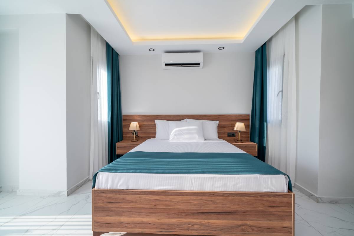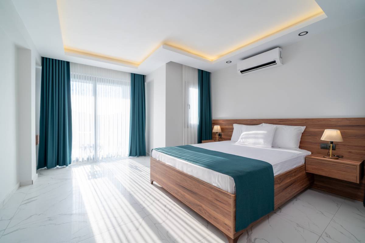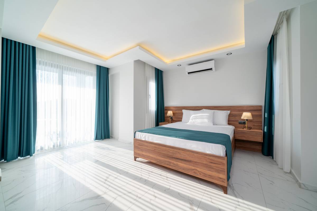 1. Yatak Odası : 1 adet Çift kişilik yatak, Komodin, Klima, banyo/WC