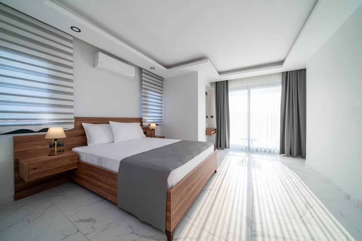 4. Yatak Odası : 1 adet Çift kişilik yatak, Komodin, Klima, banyo/WC