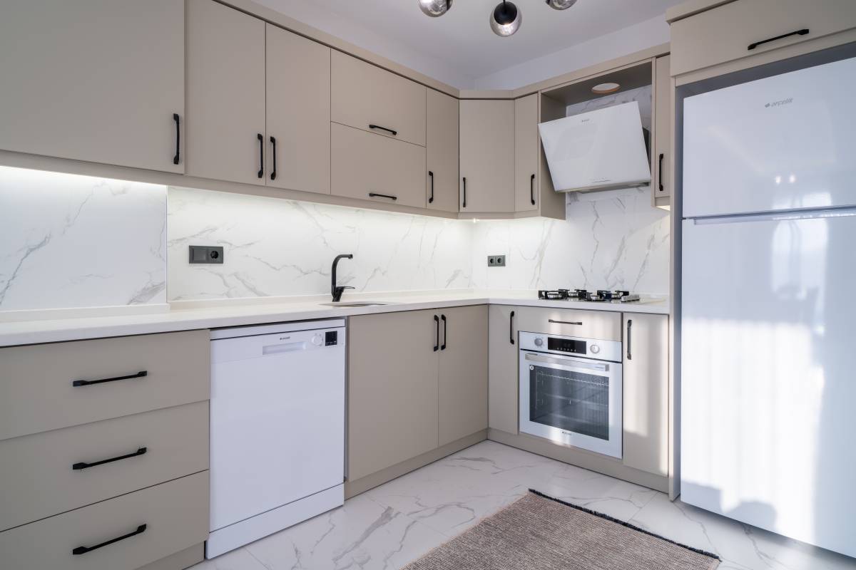 Mutfak :Modern Açık Amerikan mutfak, buzdolabı,çamaşır makinesi, ,ankastre fırın, dörtlü ocak, tost makinesi, bulaşık makinesi, çatal, kaşık, bıçak, tencere ve tavalar , yemek takımı ,vb. olup tam donanımlıdır.
