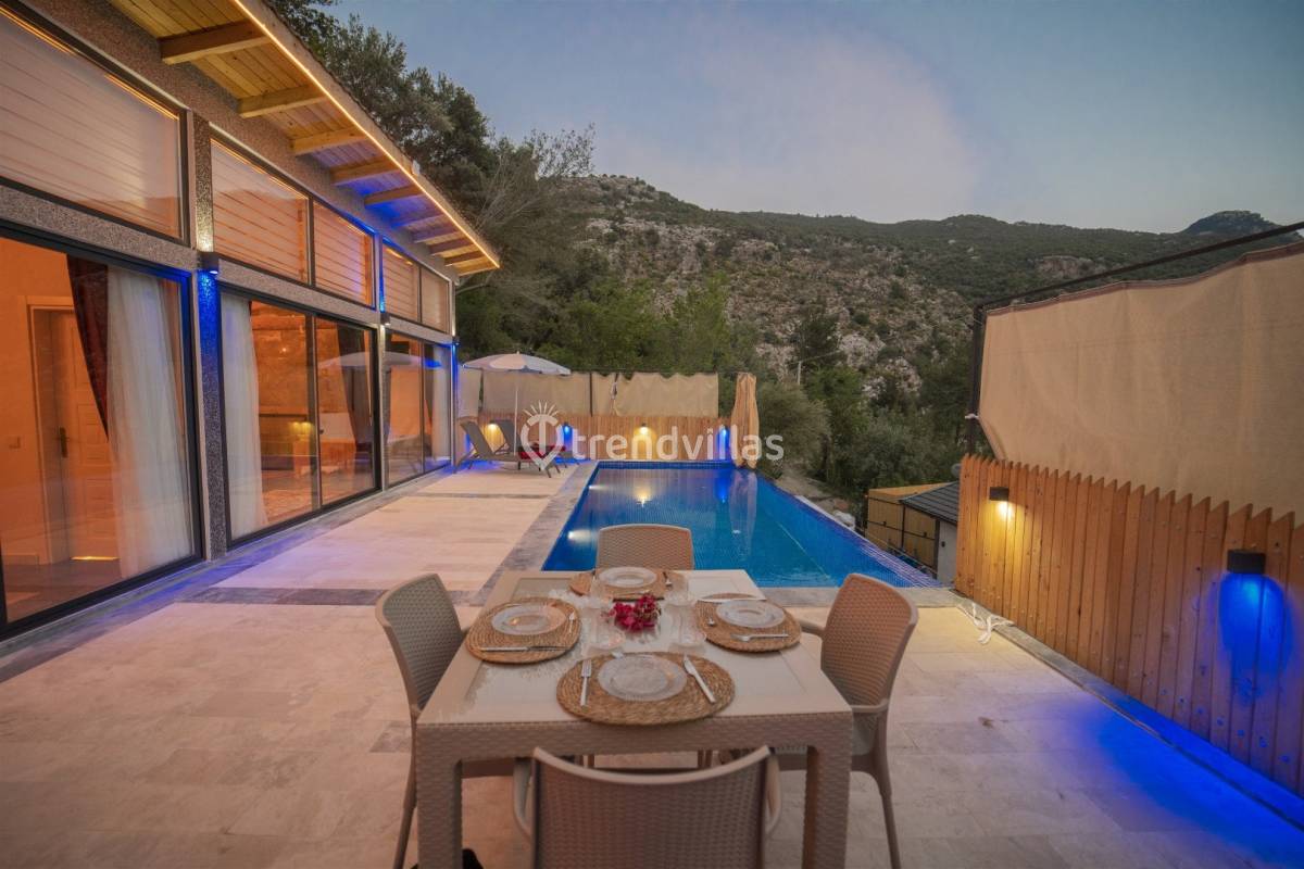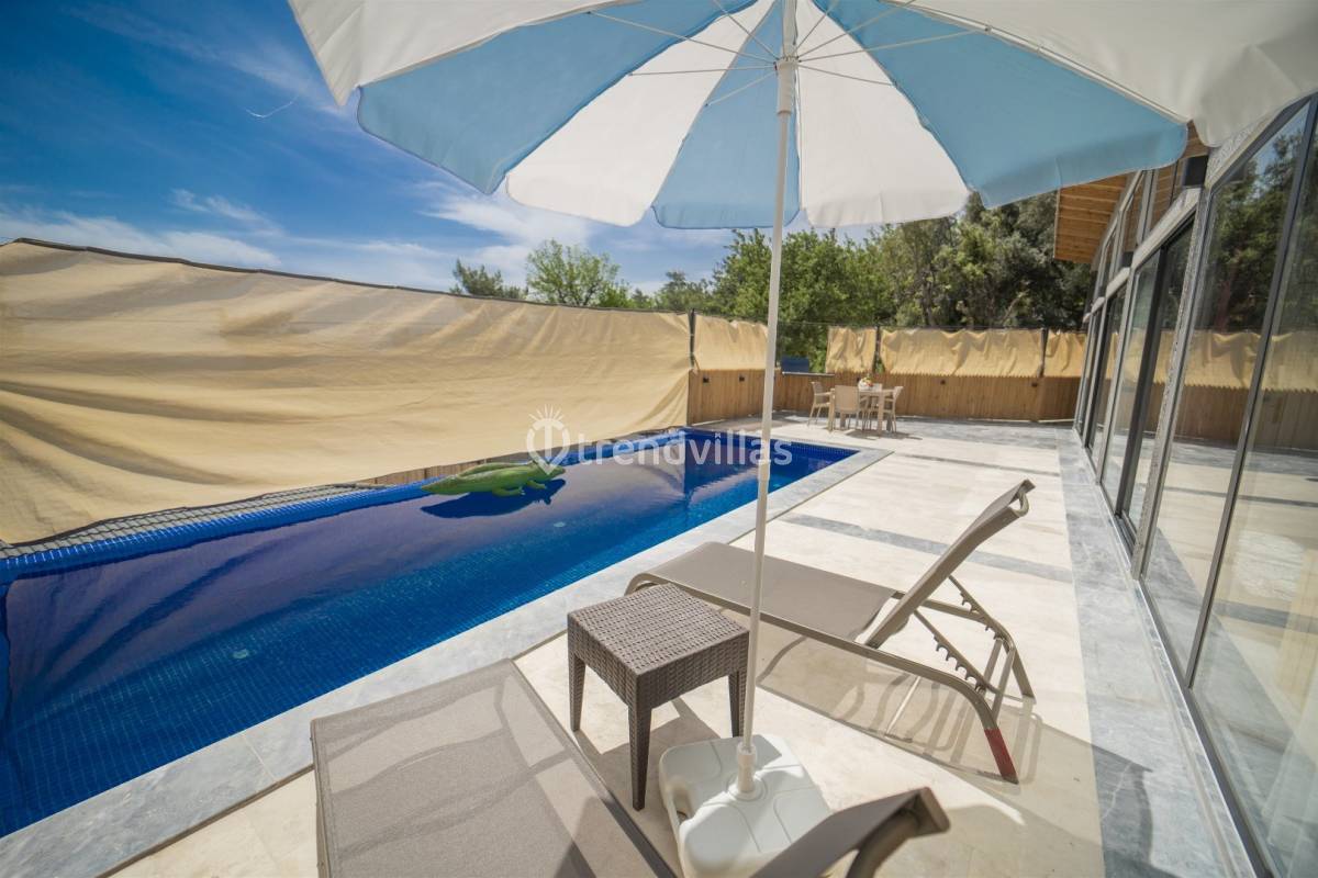 Villa Asel, Antalya Kaş Kalkan'ın İslamlar mevkiinde konumlanmış, doğa içinde yer alan, 1 yatak odası ile 2 kişilik konaklama kapasitesine sahip, çekirdek ailelere ve balayı çiftlerine hitap eden, keyifli vakit geçirebileceğiniz özel havuzu ve jakuzisi bulunan, muhafazakar yapıda tasarlanmış, modern ve şık mimaride dizayn edilmiş, rahat ve konforlu bir seçenek sunan kiralık balayı villasıdır.