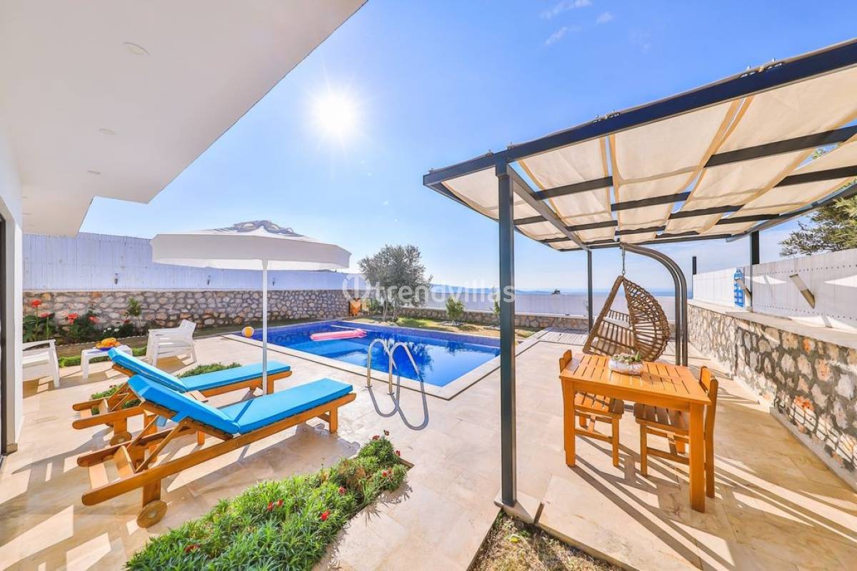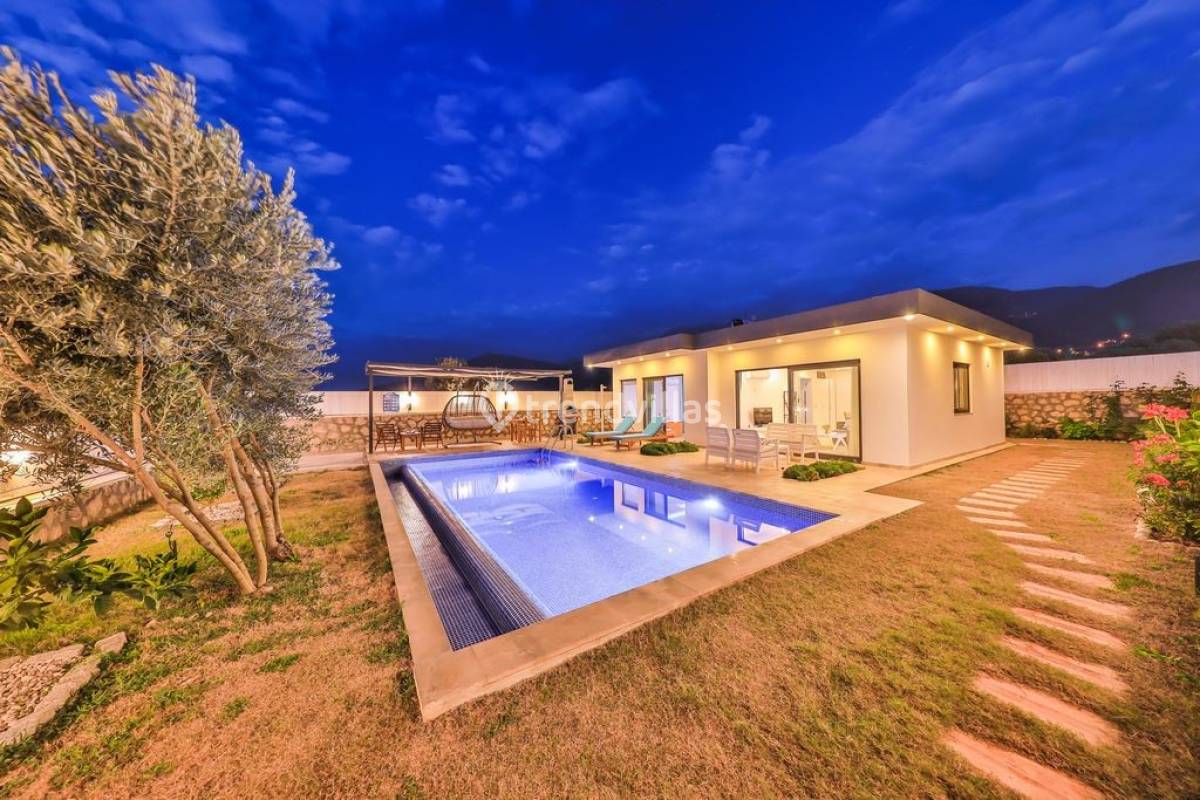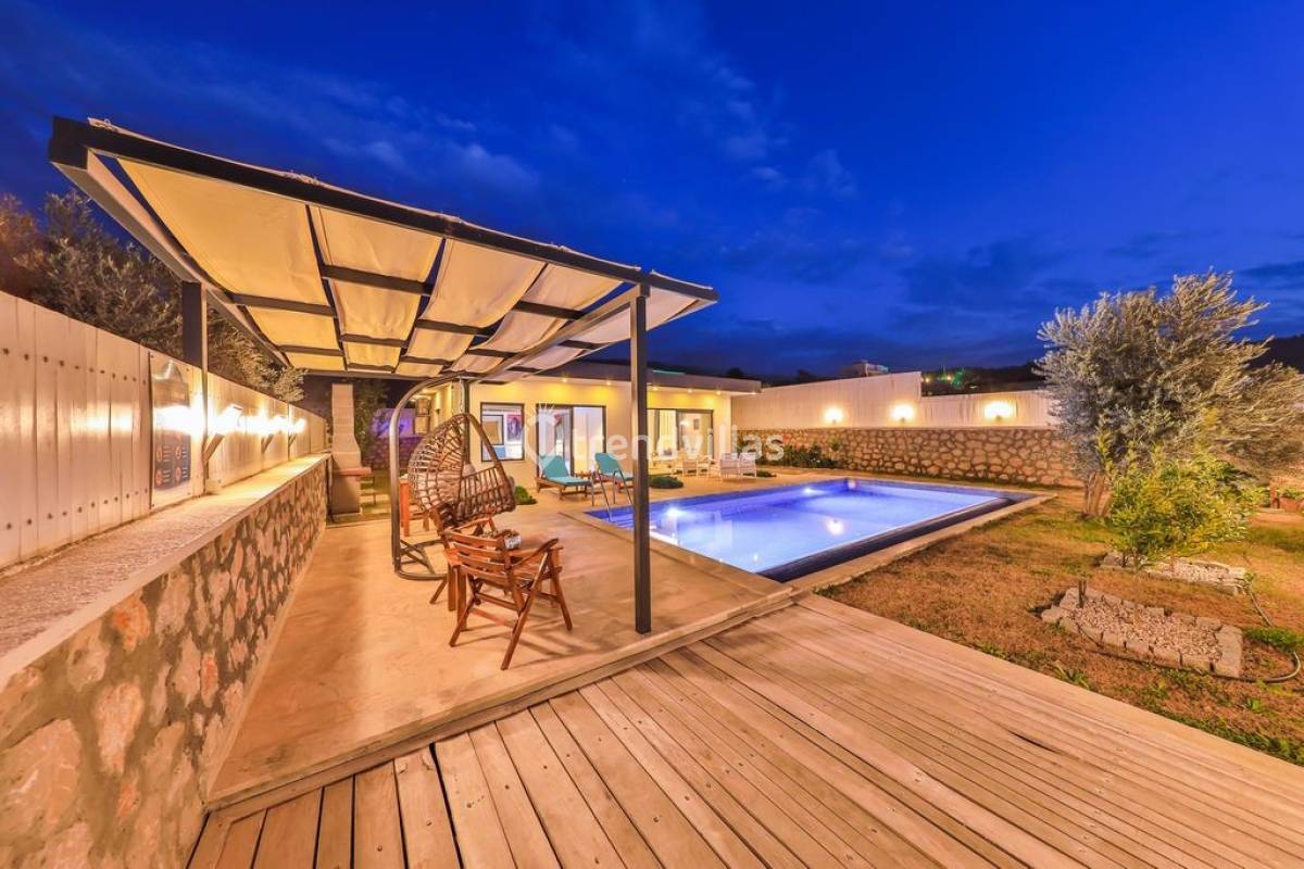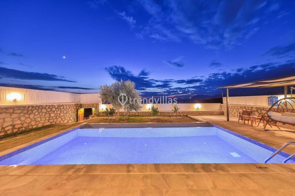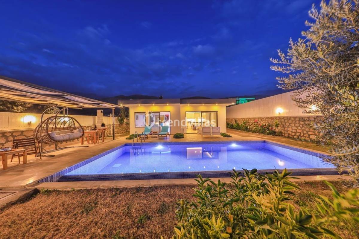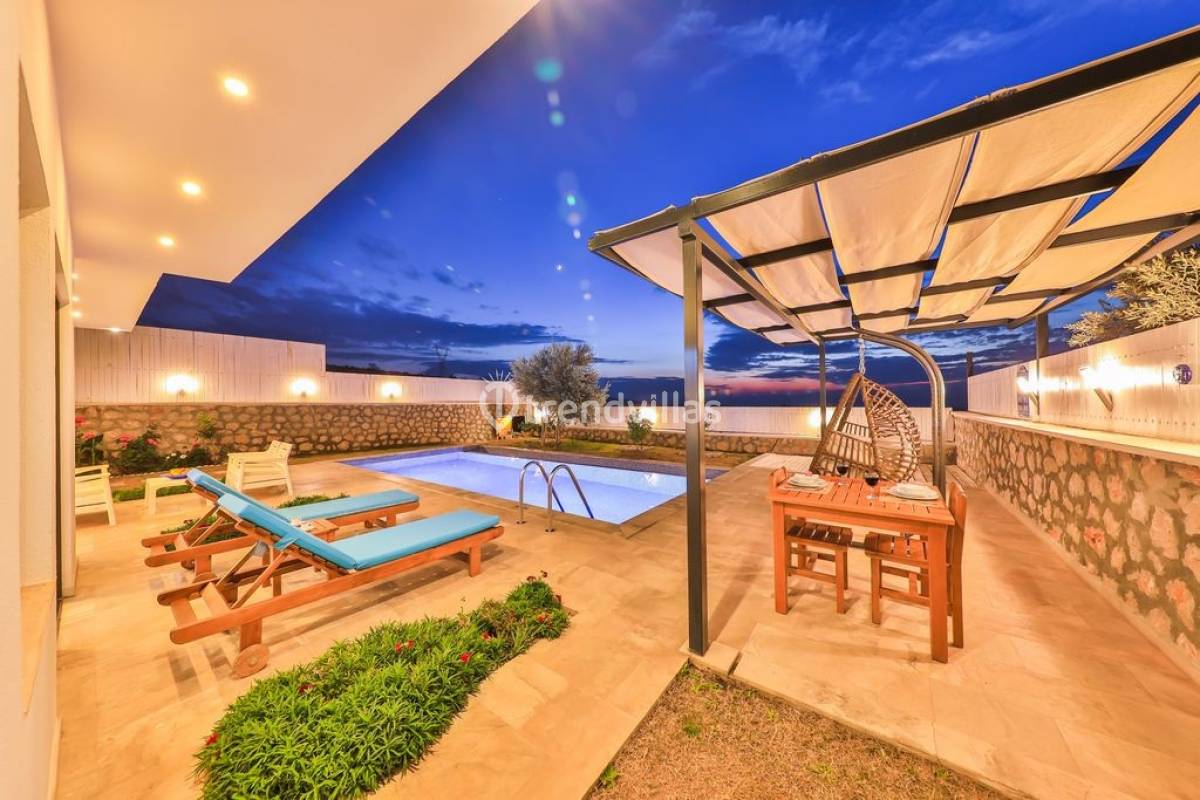 Kalkan Üzümlü Köyü'nde yer alan bu özel tatil villası, yemyeşil bir bahçeye ve dışarıdan görünmeyen korunaklı bir havuz alanına sahiptir. Genellikle balayı çiftlerinin tercih ettiği villa, mahremiyet içinde bir tatil deneyimi sunar. Şık iç tasarımı ve rahatlatıcı atmosferi ile konforlu bir konaklama imkanı sağlar. Doğayla iç içe, sakin bir ortamda, sevdiklerinizle unutulmaz anlar yaşamak için ideal bir seçenektir. Hem huzur hem de romantizm arayan çiftler için mükemmel bir tatil mekanıdır.