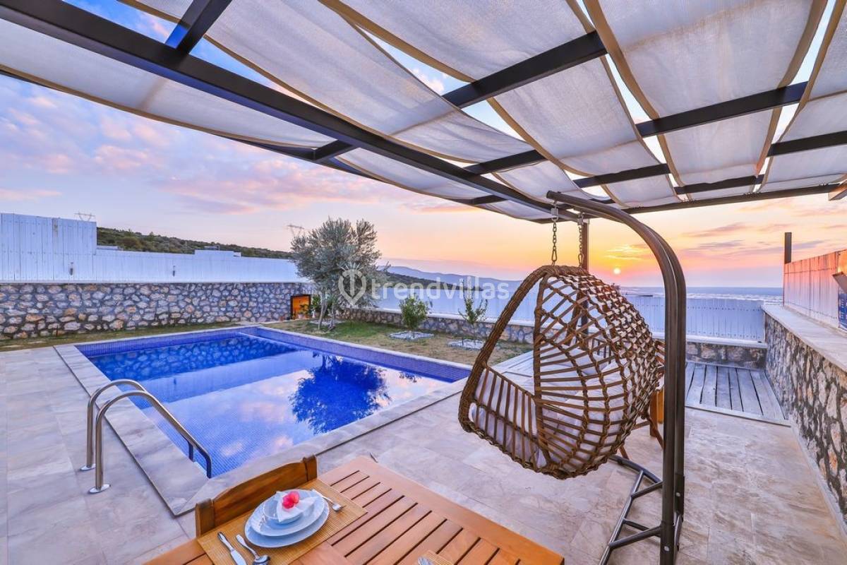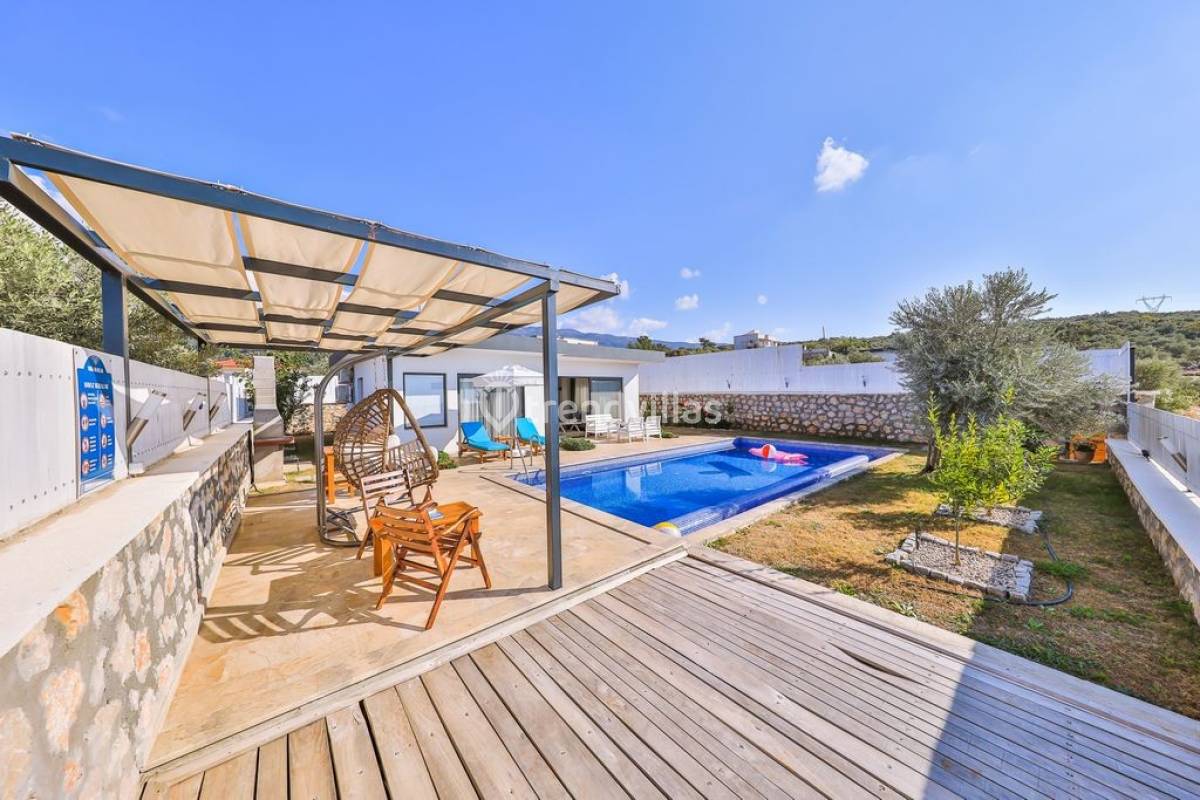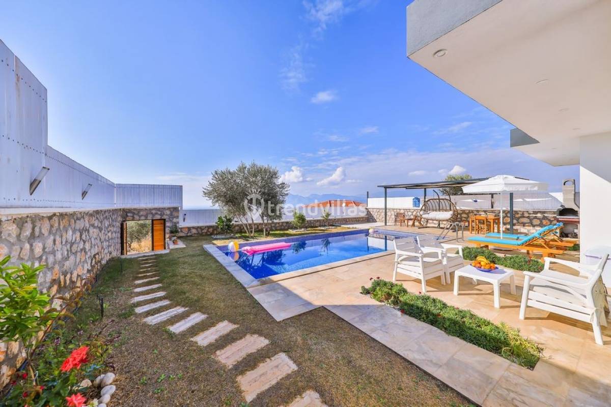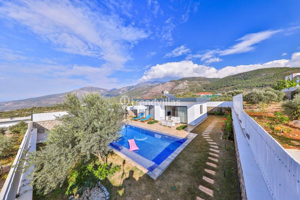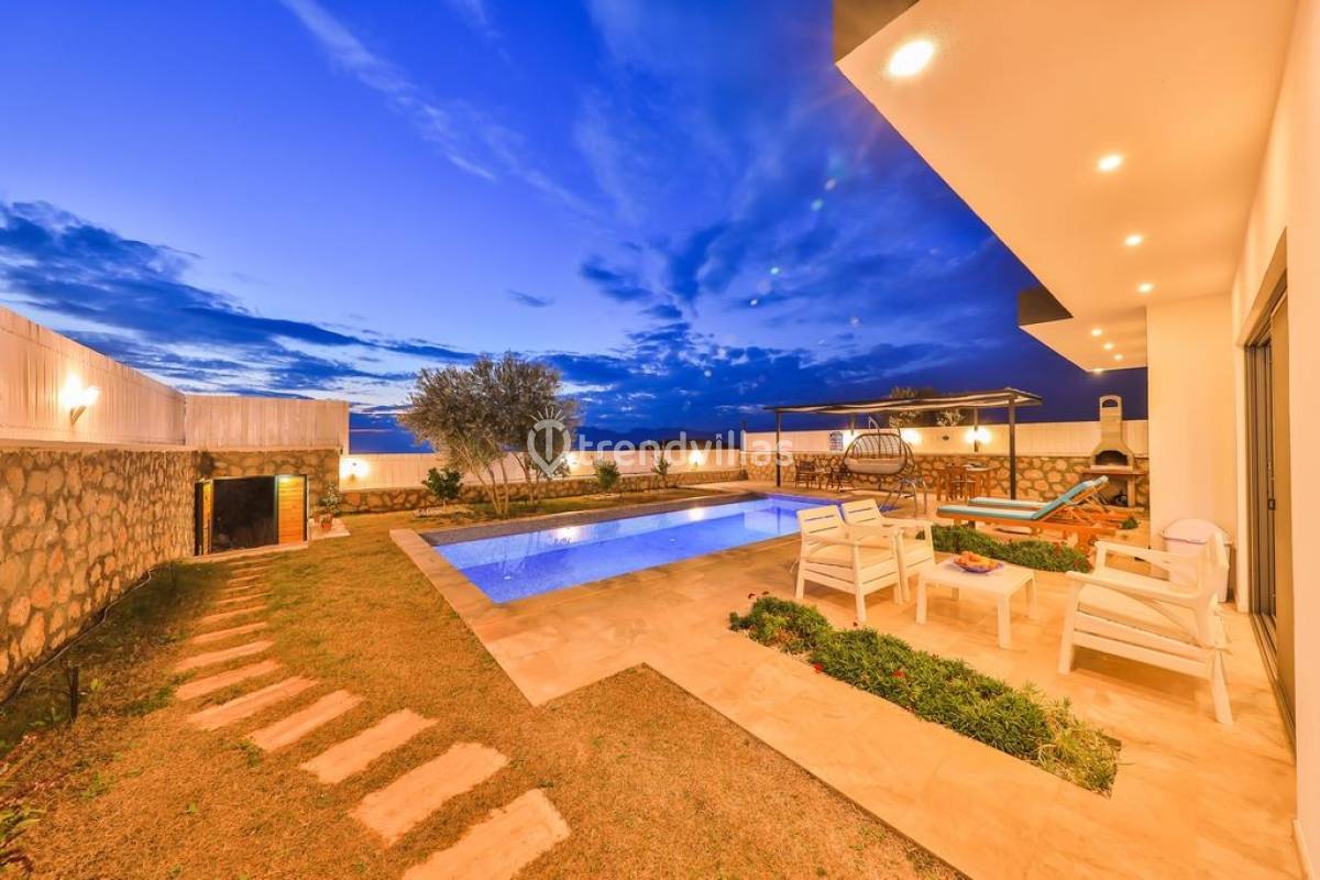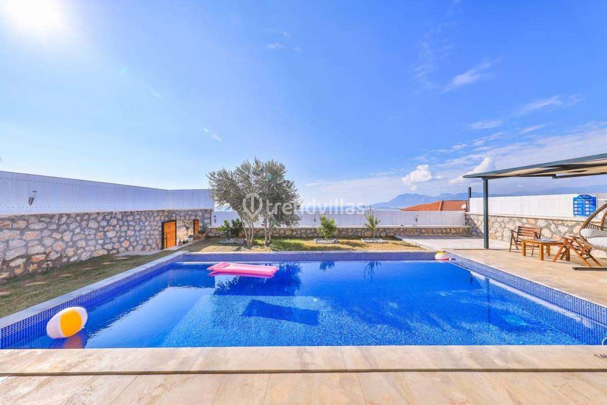 Kalkan Üzümlü Köyü'nde yer alan bu özel tatil villası, yemyeşil bir bahçeye ve dışarıdan görünmeyen korunaklı bir havuz alanına sahiptir. Genellikle balayı çiftlerinin tercih ettiği villa, mahremiyet içinde bir tatil deneyimi sunar. Şık iç tasarımı ve rahatlatıcı atmosferi ile konforlu bir konaklama imkanı sağlar. Doğayla iç içe, sakin bir ortamda, sevdiklerinizle unutulmaz anlar yaşamak için ideal bir seçenektir. Hem huzur hem de romantizm arayan çiftler için mükemmel bir tatil mekanıdır.