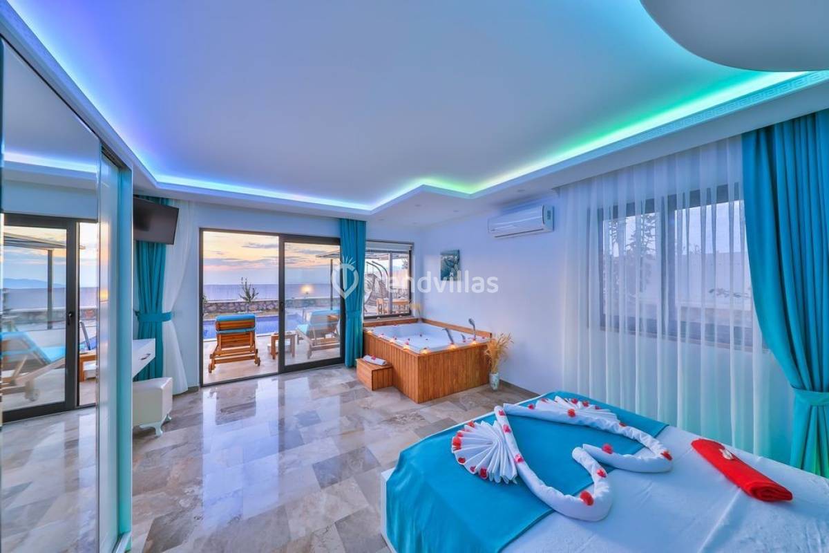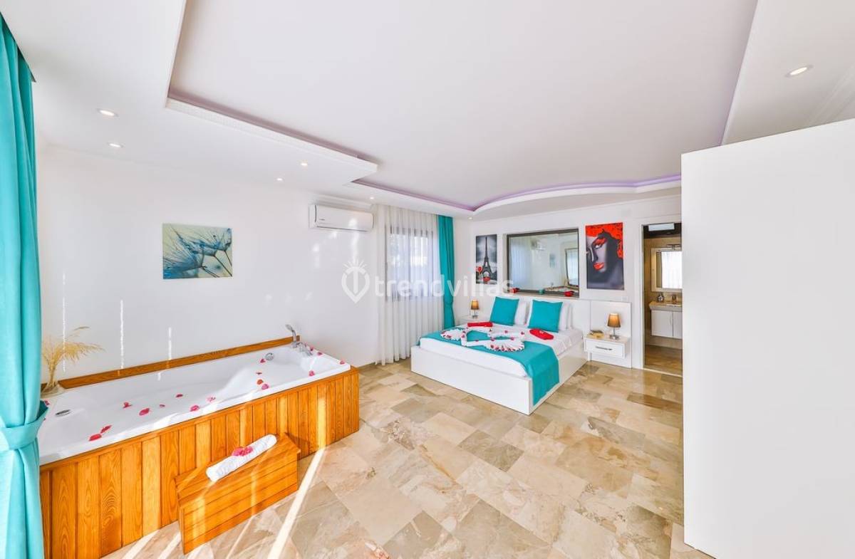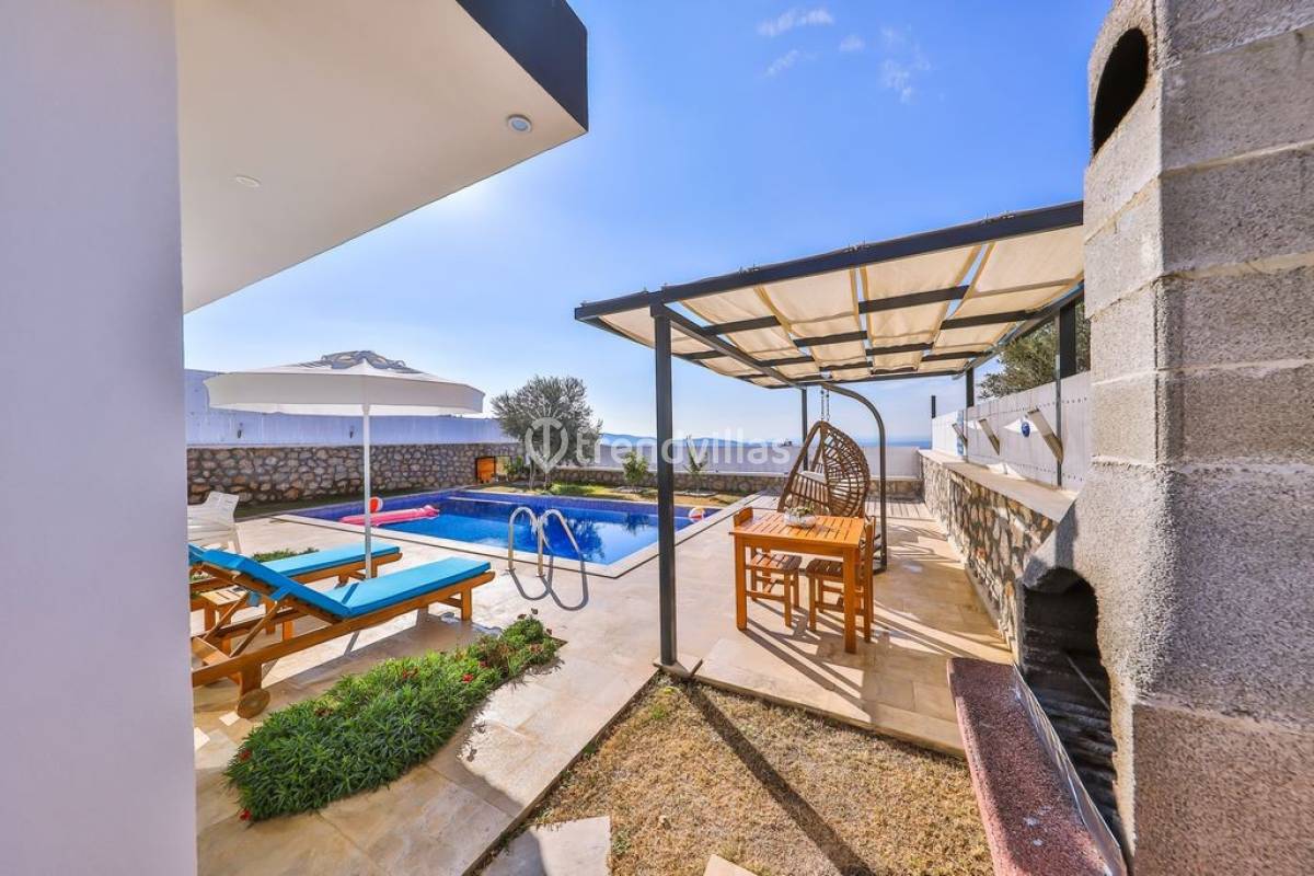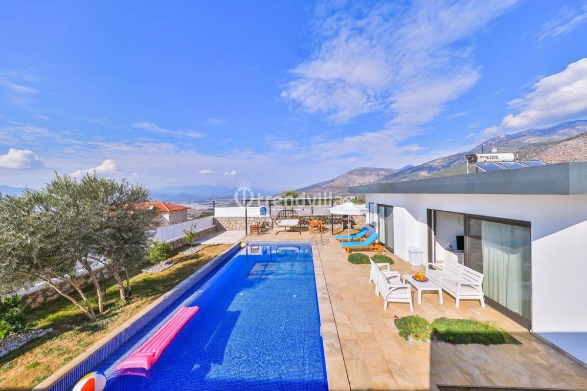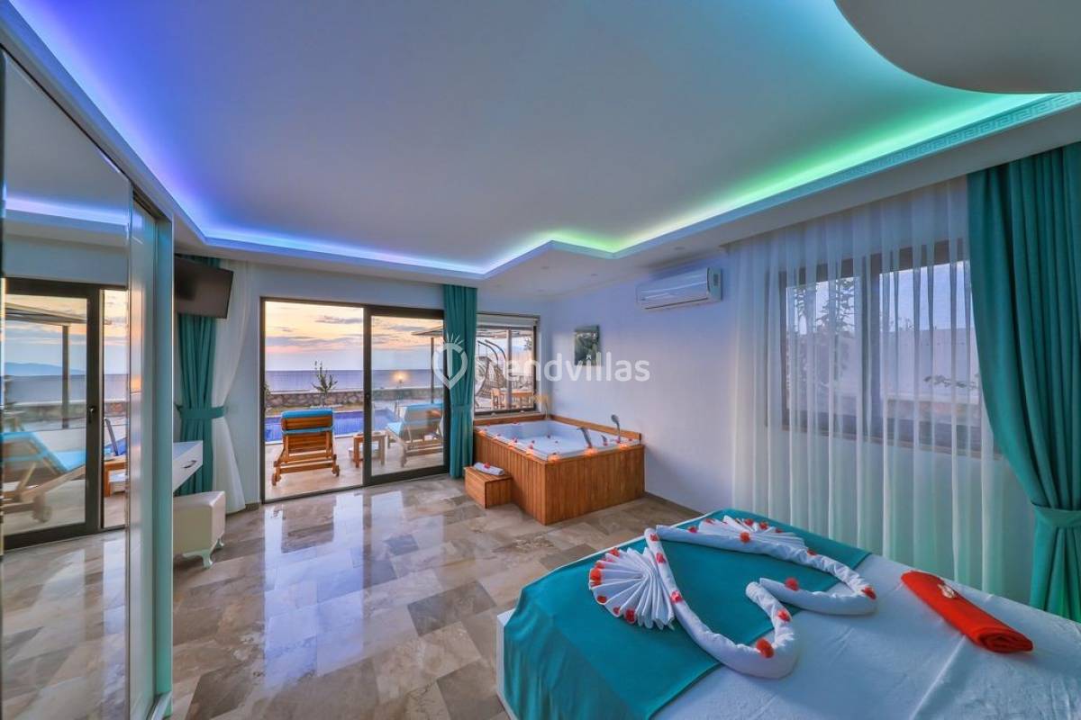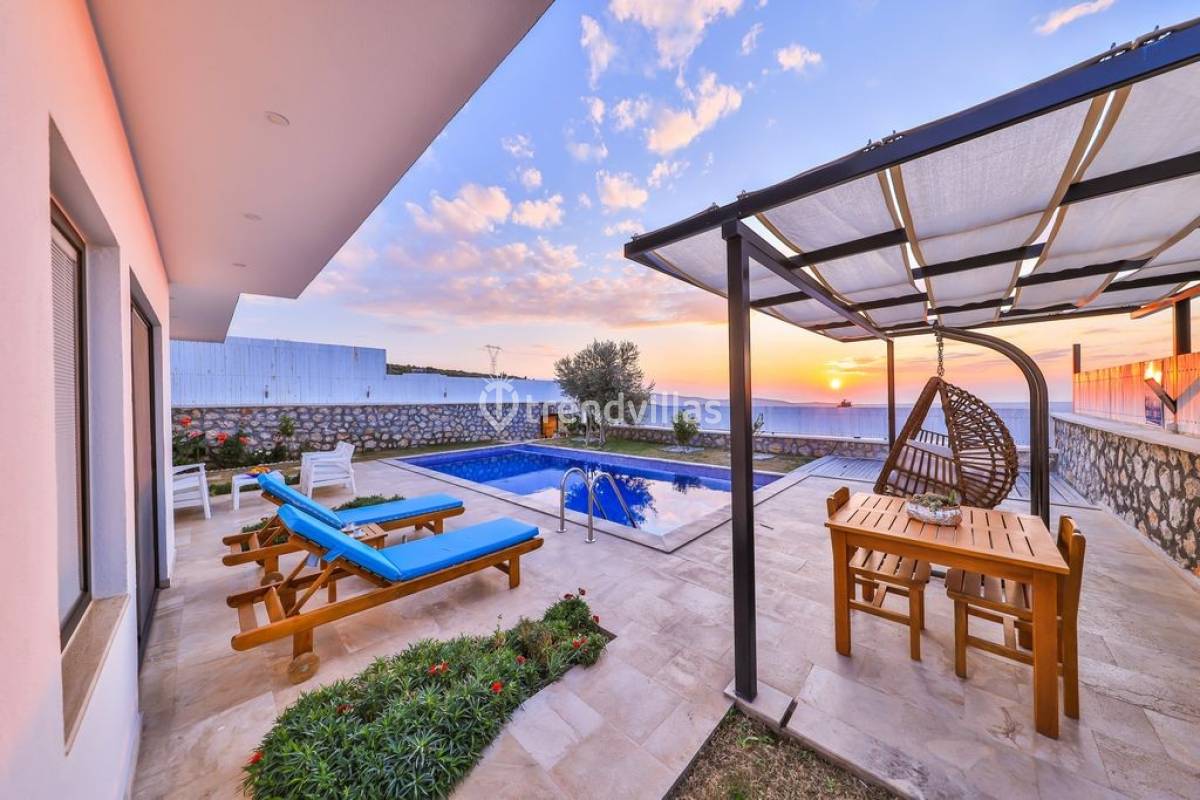 Kalkan Üzümlü Köyü'nde yer alan bu özel tatil villası, yemyeşil bir bahçeye ve dışarıdan görünmeyen korunaklı bir havuz alanına sahiptir. Genellikle balayı çiftlerinin tercih ettiği villa, mahremiyet içinde bir tatil deneyimi sunar. Şık iç tasarımı ve rahatlatıcı atmosferi ile konforlu bir konaklama imkanı sağlar. Doğayla iç içe, sakin bir ortamda, sevdiklerinizle unutulmaz anlar yaşamak için ideal bir seçenektir. Hem huzur hem de romantizm arayan çiftler için mükemmel bir tatil mekanıdır.