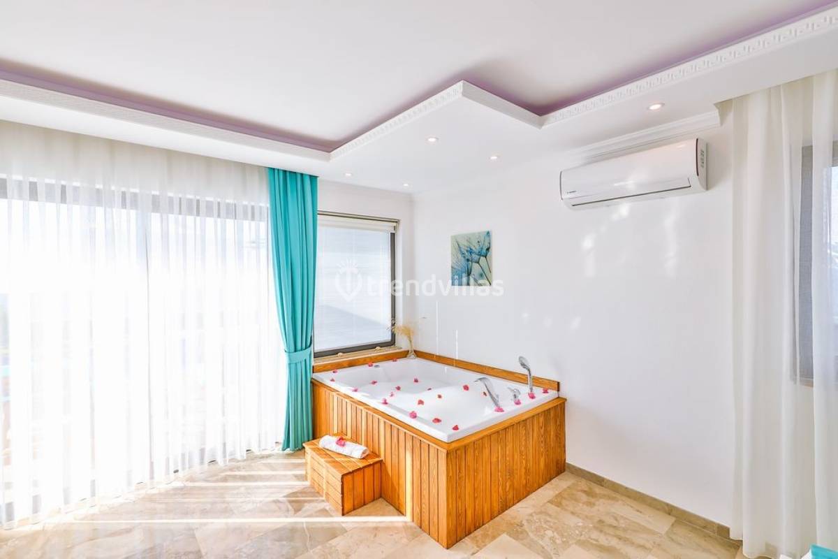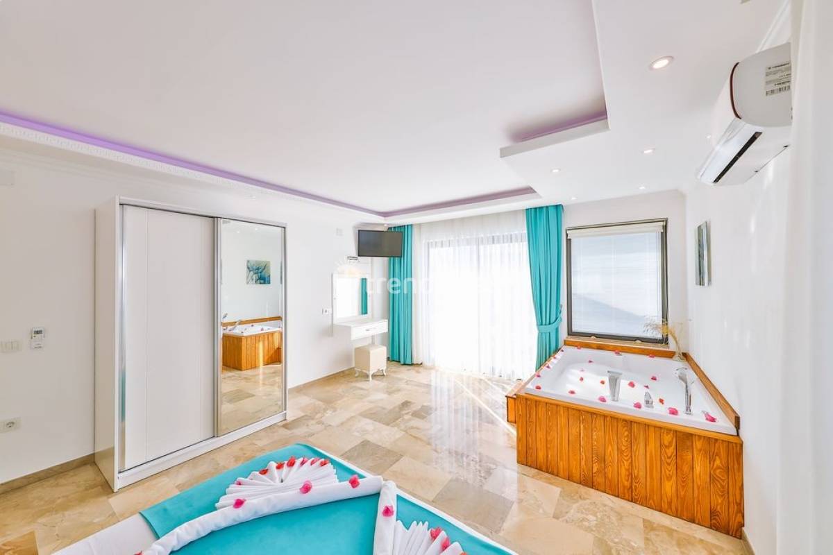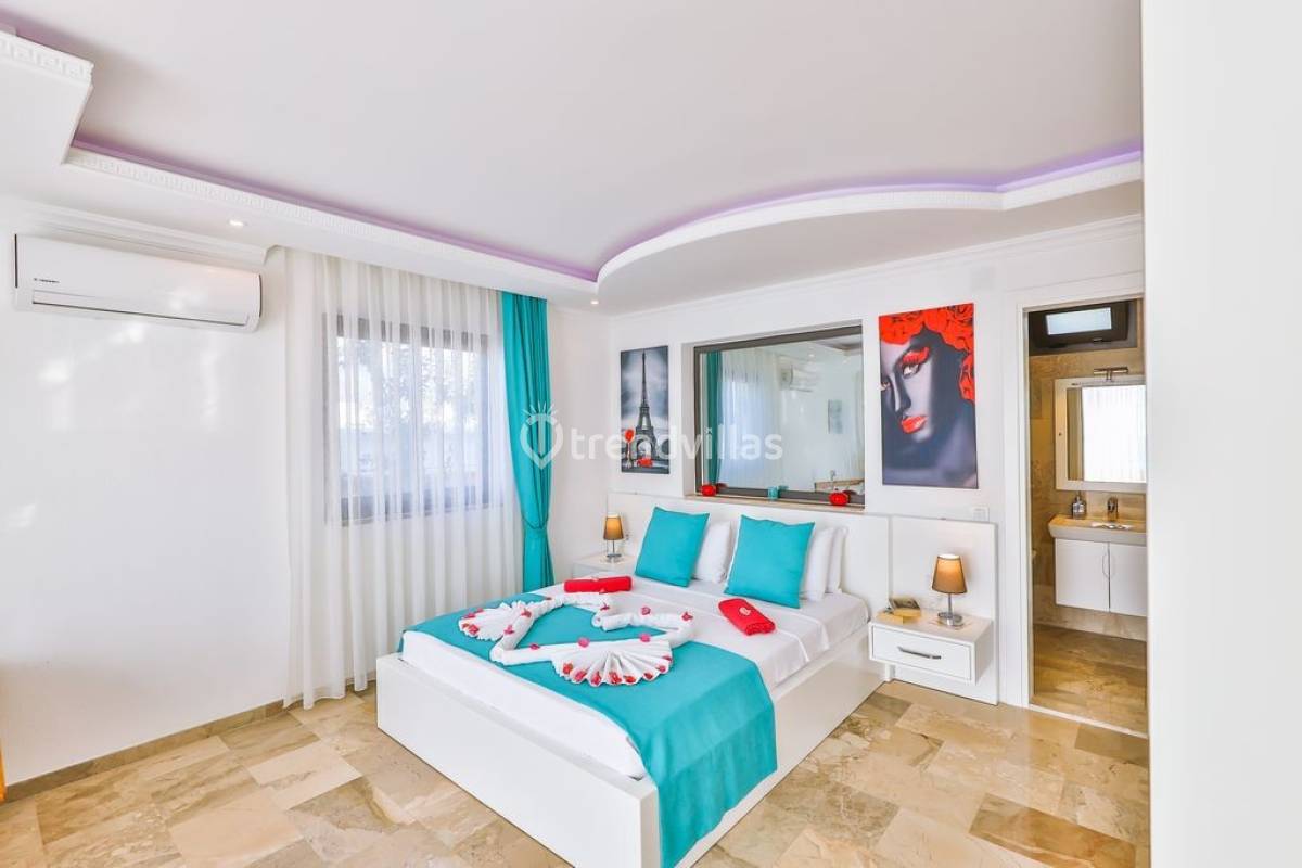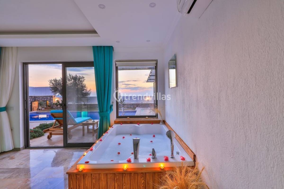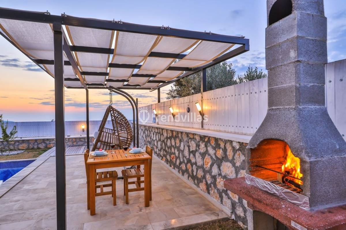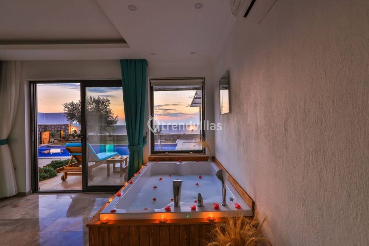 Kalkan Üzümlü Köyü'nde yer alan bu özel tatil villası, yemyeşil bir bahçeye ve dışarıdan görünmeyen korunaklı bir havuz alanına sahiptir. Genellikle balayı çiftlerinin tercih ettiği villa, mahremiyet içinde bir tatil deneyimi sunar. Şık iç tasarımı ve rahatlatıcı atmosferi ile konforlu bir konaklama imkanı sağlar. Doğayla iç içe, sakin bir ortamda, sevdiklerinizle unutulmaz anlar yaşamak için ideal bir seçenektir. Hem huzur hem de romantizm arayan çiftler için mükemmel bir tatil mekanıdır.
