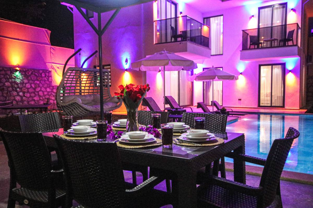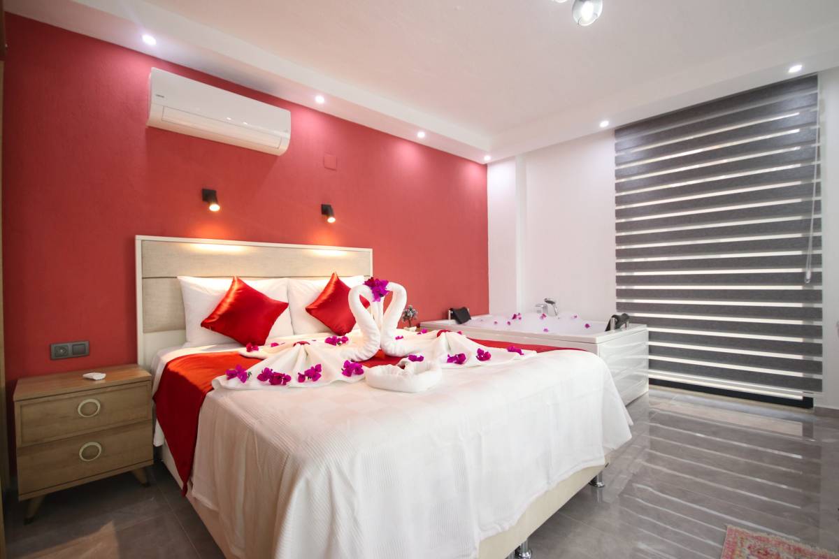 Kalkan Patara mevkisinde bulunan kiralık balayı villası, merkeze yürüme mesafesinde bir tatil isteyen çiftlerimiz için oldukça uygun bir seçenektir. Muhafazakar villalar ve balayı villaları kategorisinde yer alan villamız, 2 yatak odası ile 4 kişilik konaklama kapasitesine sahiptir. Havuzu korunaklı ve bahçesi dışarıdan görünmeyen Villa Deha, mahremiyete önem veren ailelerimiz için huzur dolu bir tatil fırsatı sunuyor. Ayrıca misafirlerimizin rahatlaması ebeveyn yatak odasında 2 kişilik jakuzi konforu da sağlamaktadır.