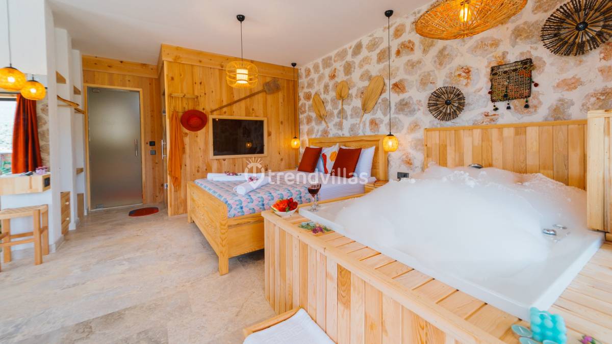 Villamızın yatak odasında jakuzi ,hamam, sauna mevcuttur. Jakuzili villamız balayı tatili için de çok idealdir.
