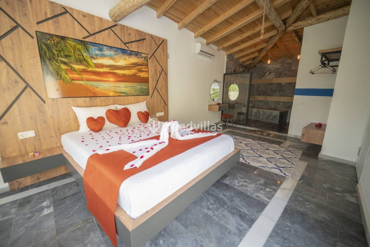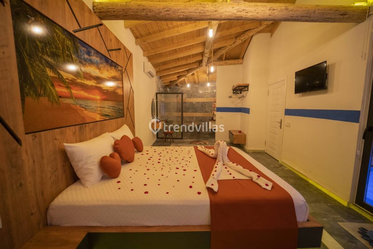 Yatak Odası: 1 Adet çift kişilik yatak, komodin, elbise dolabı, jakuzi ve klima bulunmaktadır.