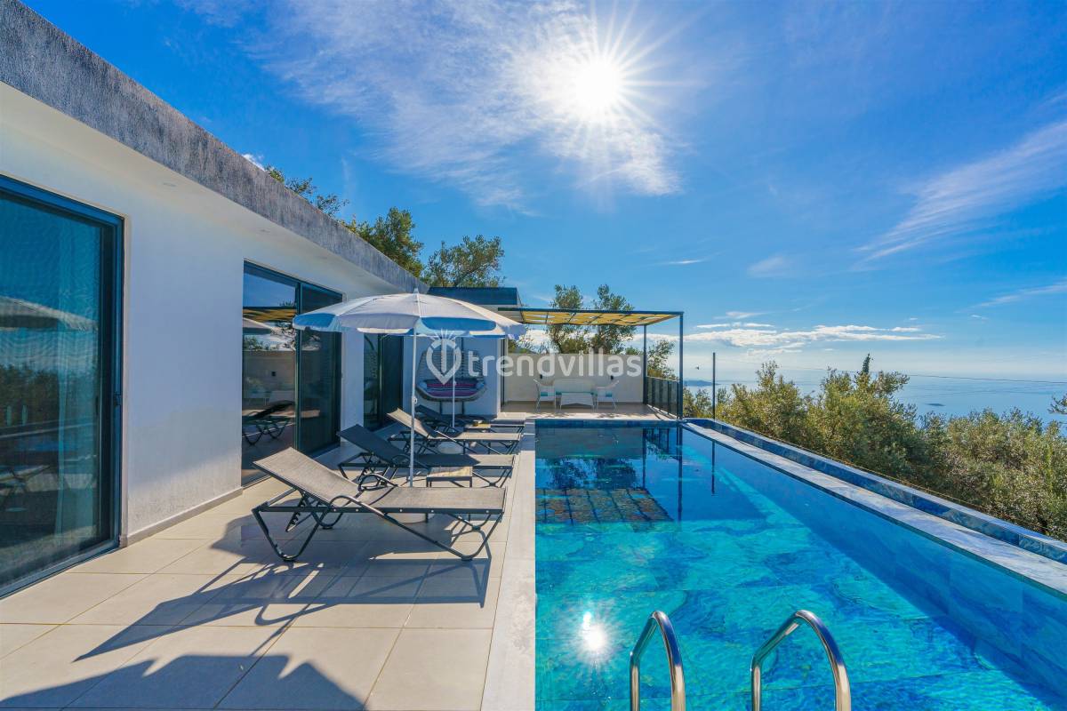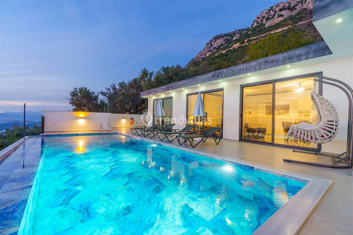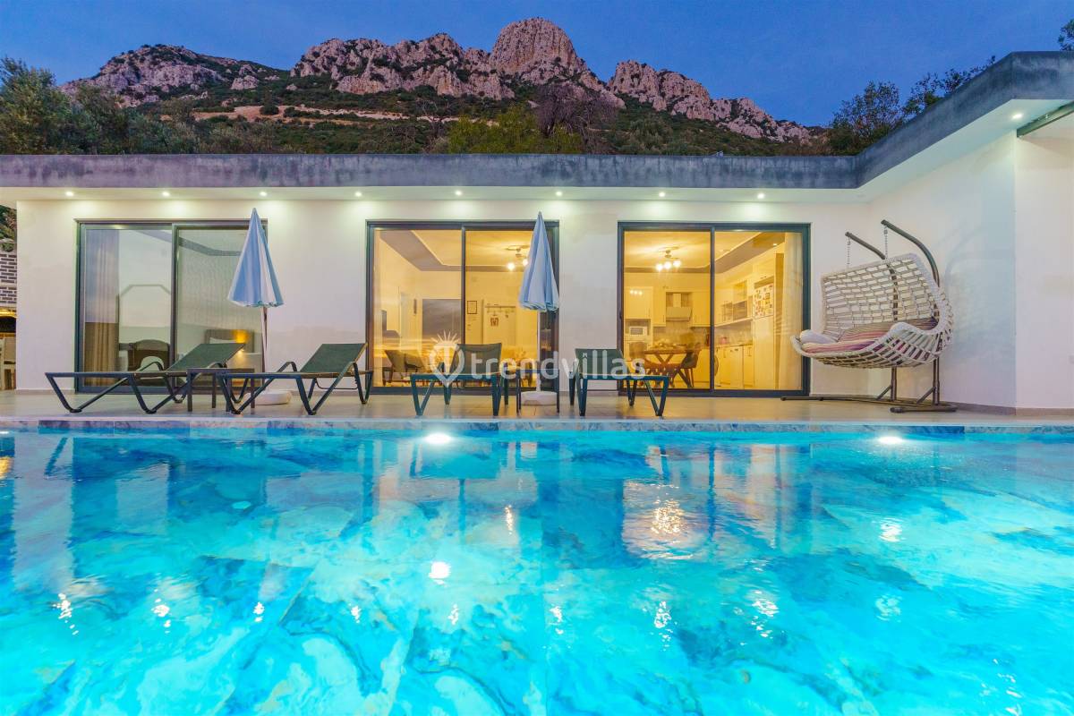 Villanın iç mekânı modern ve ferah bir anlayışla tasarlanmıştır. Açık plan salon ve tam donanımlı mutfak, tatiliniz boyunca ihtiyacınız olan tüm ekipmanları sunar. Geniş camlar sayesinde deniz manzarası yaşam alanının her köşesine taşınır ve keyifli bir atmosfer oluşturur.