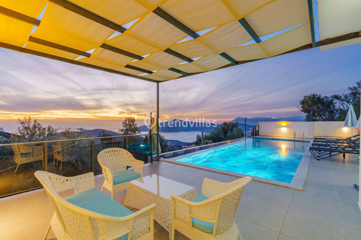 Villanın dış alanı tamamen korunaklı olarak tasarlanmıştır. Özel yüzme havuzu ve güneşlenme terası dışarıdan görünmez yapıdadır ve muhafazakar misafirler için rahat bir kullanım sunar.