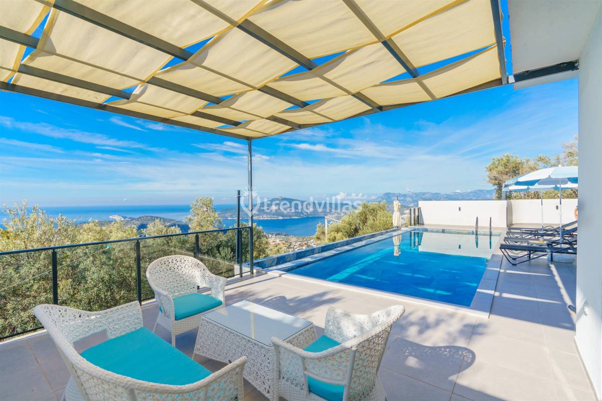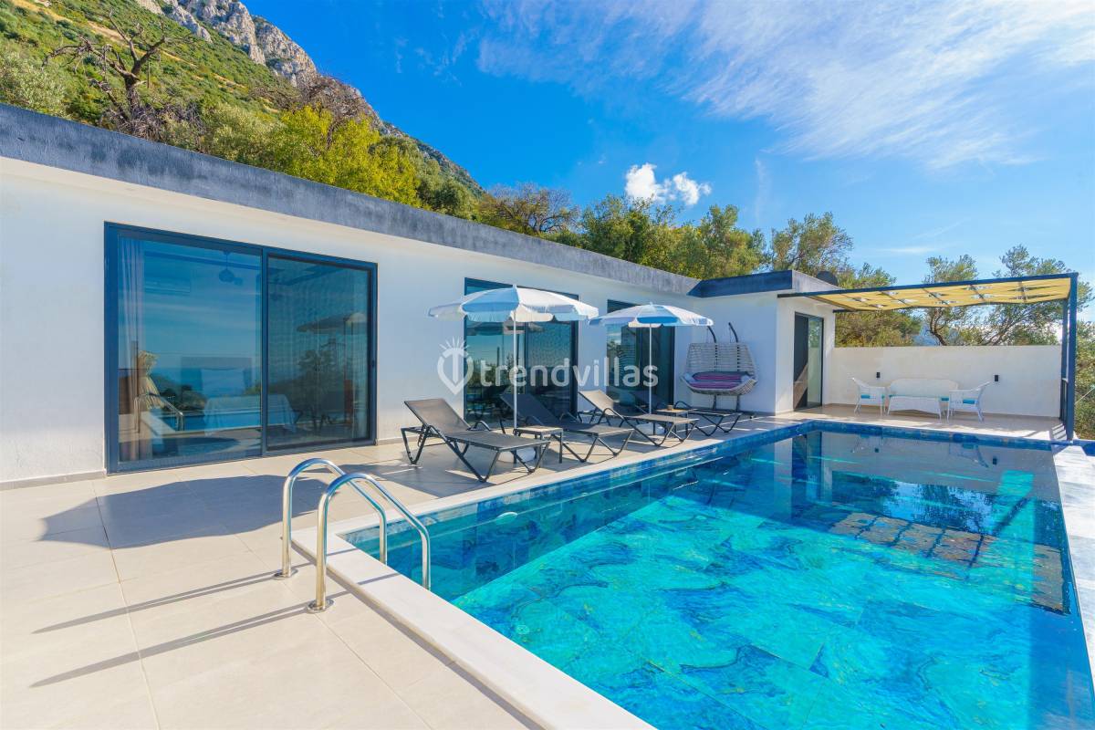 Havuz terasında şezlonglar, salıncak, oturma alanı ve barbekü bulunur. Deniz manzarasına karşı mangal keyfi yapabilir, gün boyu güneşin ve huzurun tadını çıkarabilirsiniz.