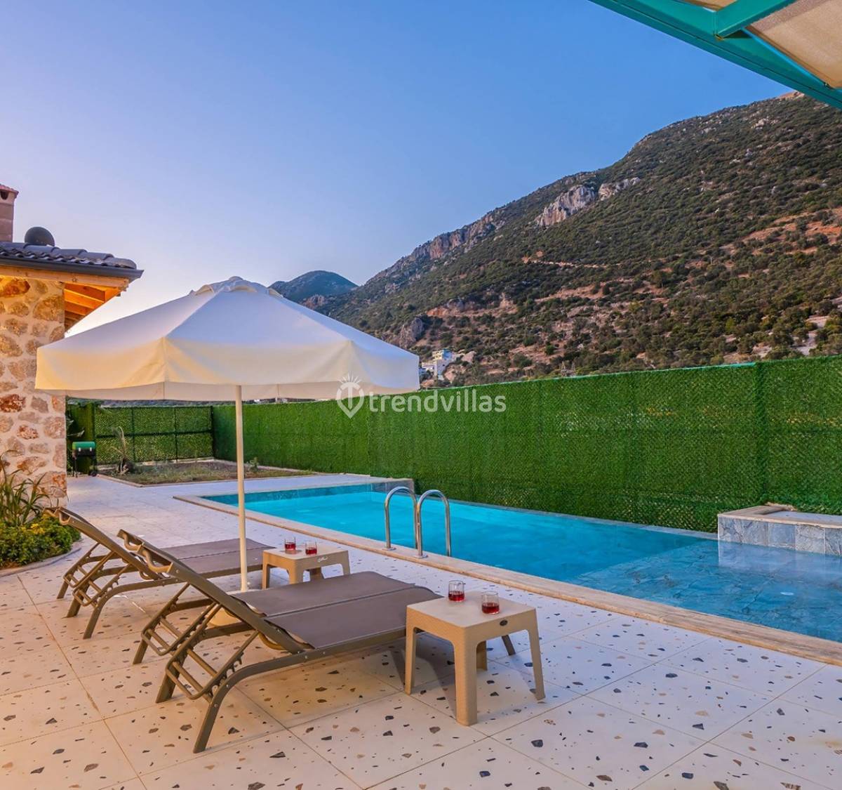 Villamızın özel havuzu, gün boyu serinlemenizi sağlarken, taş ve ahşabın sıcak ve şık tasarımı ise size evinizdeki konforu hissettirecek. Doğanın içinde huzurlu bir kaçamak yapmak isteyenler için ideal bir seçenek olan villamız, Kaş Kalkan'ın benzersiz manzarası eşliğinde unutulmaz anılar biriktirmenize olanak tanıyor.