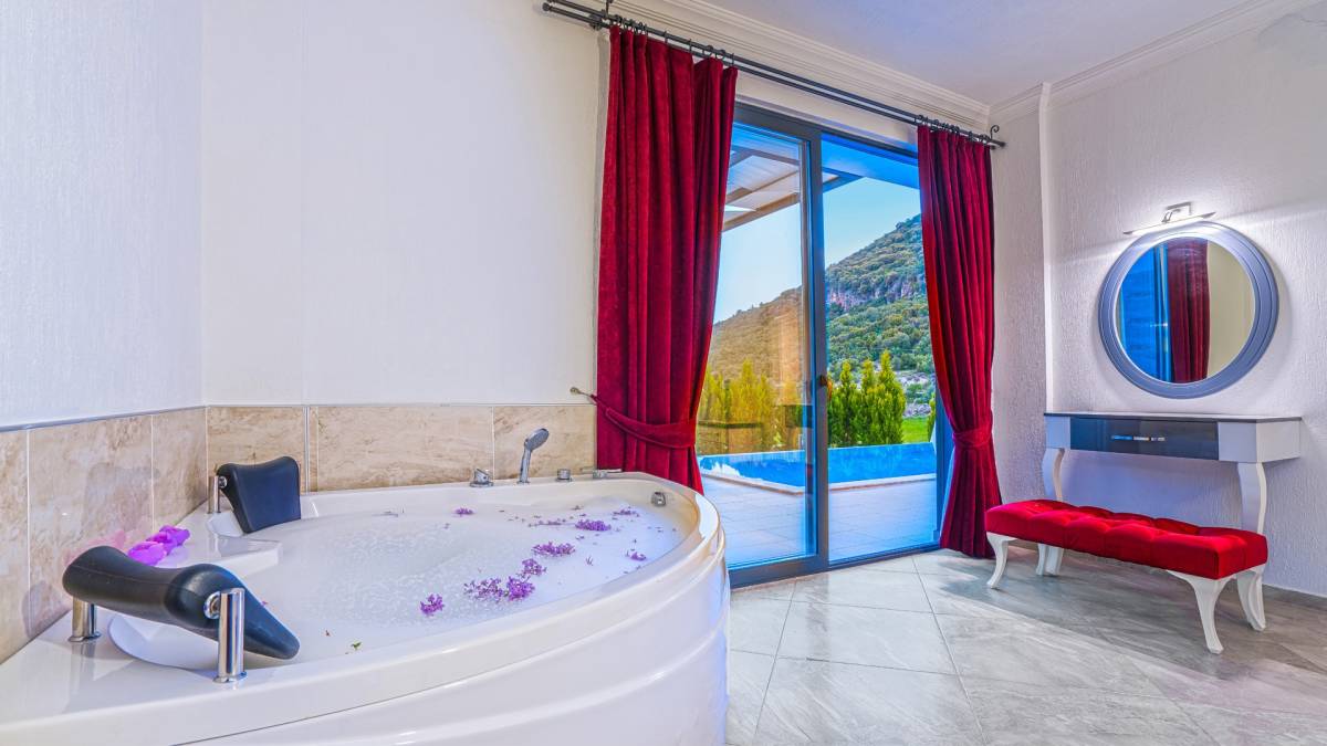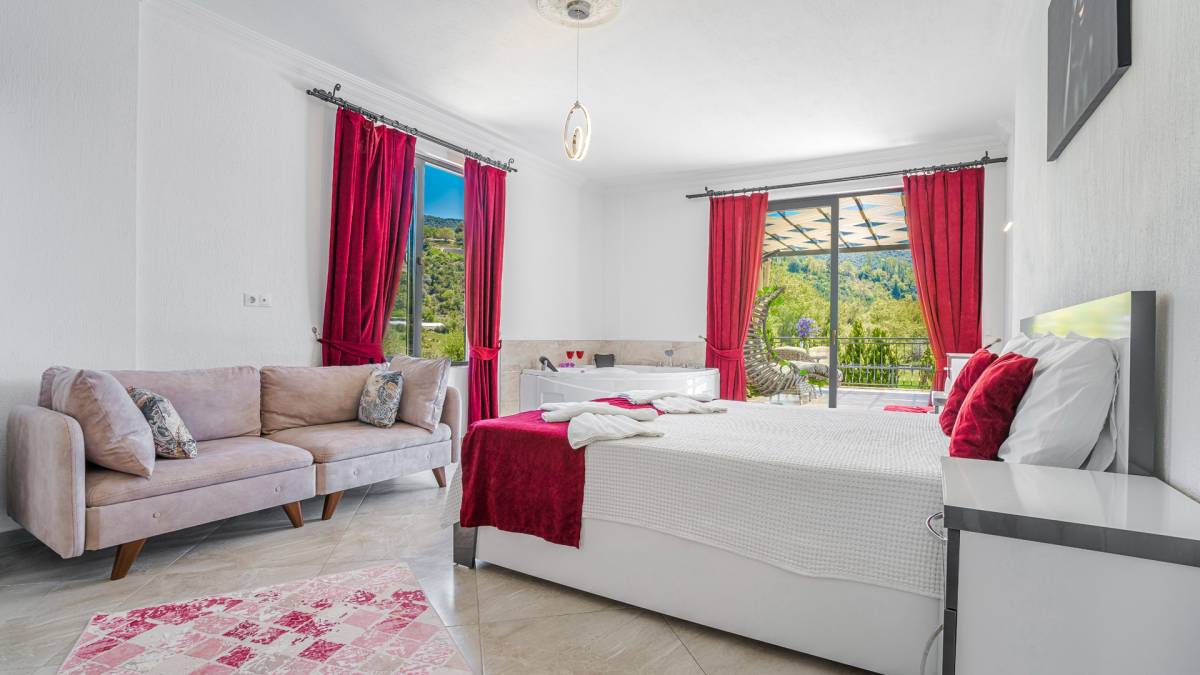 Villamız Kalkan Sarıbelen mevkisin de bulunmaktadır. Kiralık yazlık villamız 2 yatak odalı 4 kişilik konaklama kapasitesine sahiptir. Doğa içerisinde bulunan şehrin gürültüsünden uzak hem yeşillikler içerinde olan villamız havuz terası muhafazakar olup dışarıdan gözükmemektedir. Özel yüzme havuzunda oldukça rahat güneşlenme havuz terasına sahiptir. Ayrıca çift kişilik yatak odasında 2 kişilik jakuzi bulunmaktadır. Doğa içinde huzur ve rahatlık arayanlar için muazzam bir seçenek olacaktır yazlık villamız.