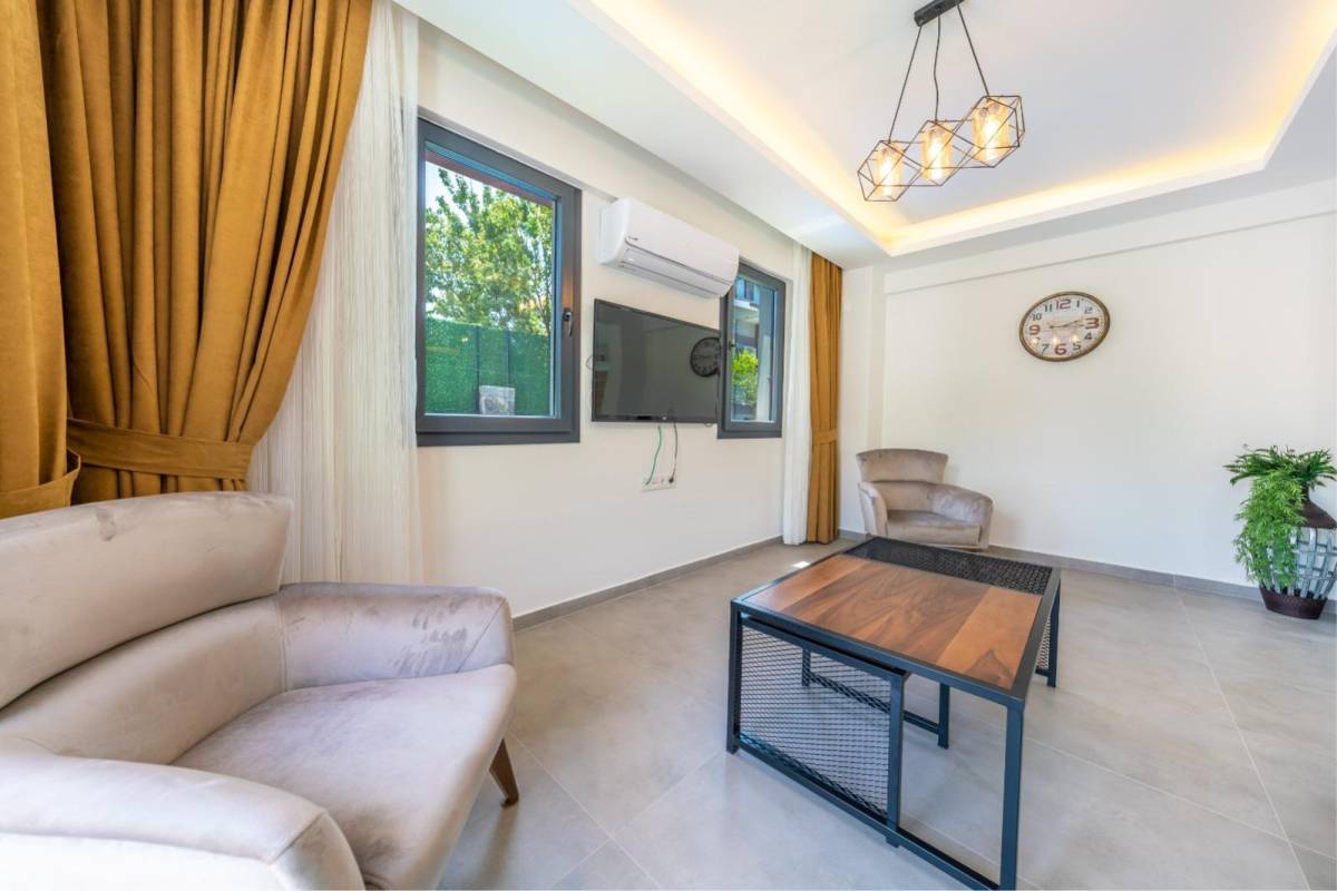 Salon : Salon içerisinde modern oturma grubu, klima ve TV yer almaktadır.