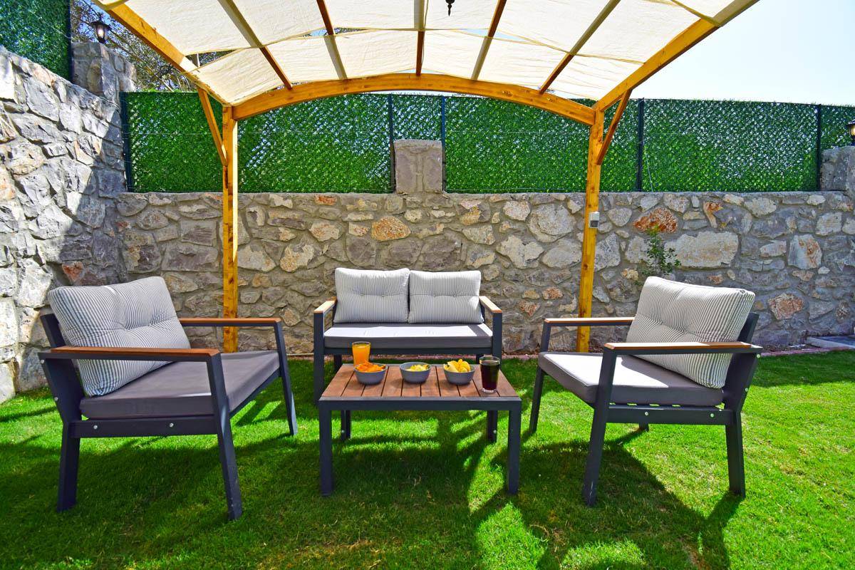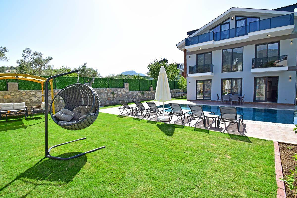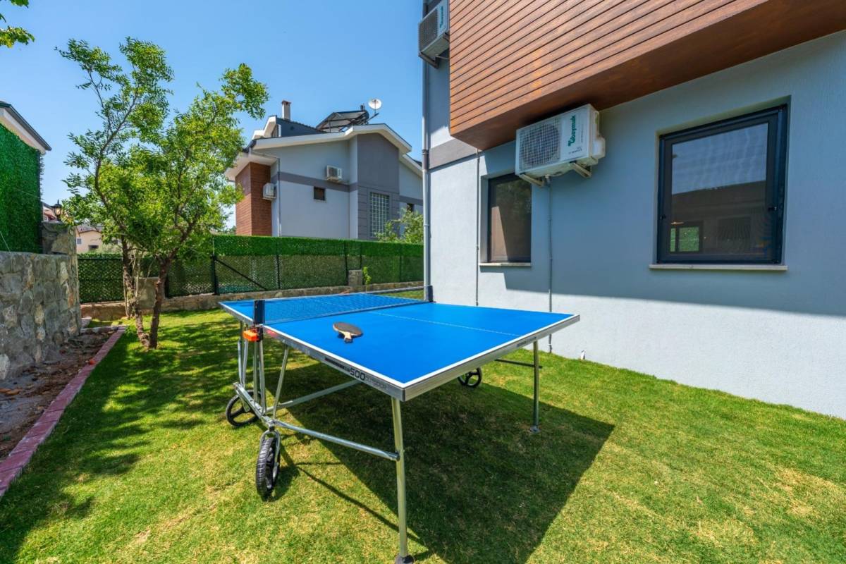 Özel bahçe : Özel bahçesinde özel havuzu bulunmaktadır. Ayrıca bahçede oturma grubu, masa ve sandalyeler, 1 adet bambu tek kişilik salıncak, masa tenisi ve barbekü/mangal bulunmaktadır.
