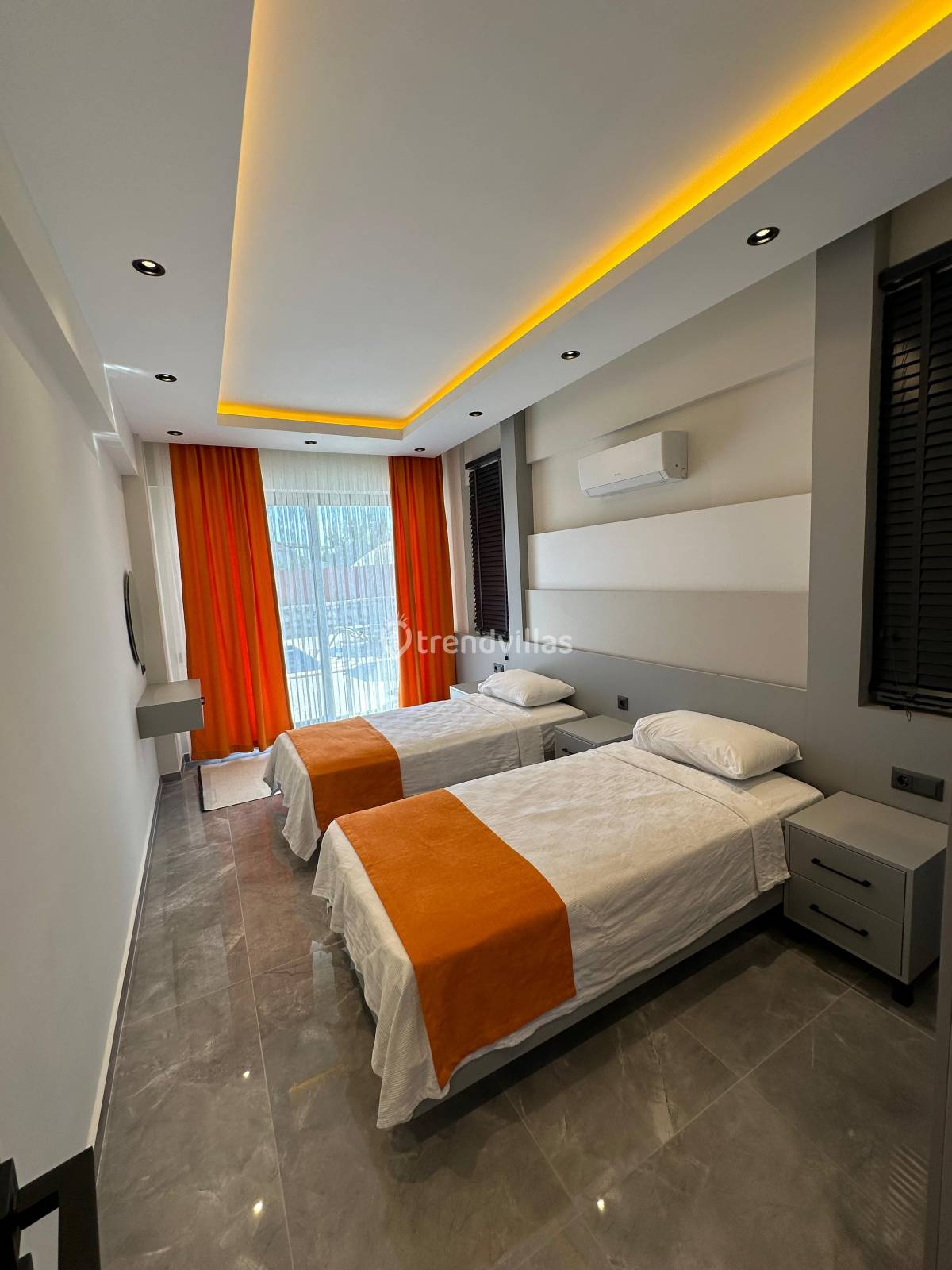 3.YATAK ODASI : 2 tek kişilik yatak + klima + ortak banyo