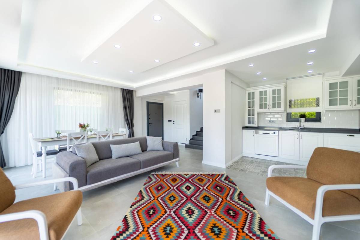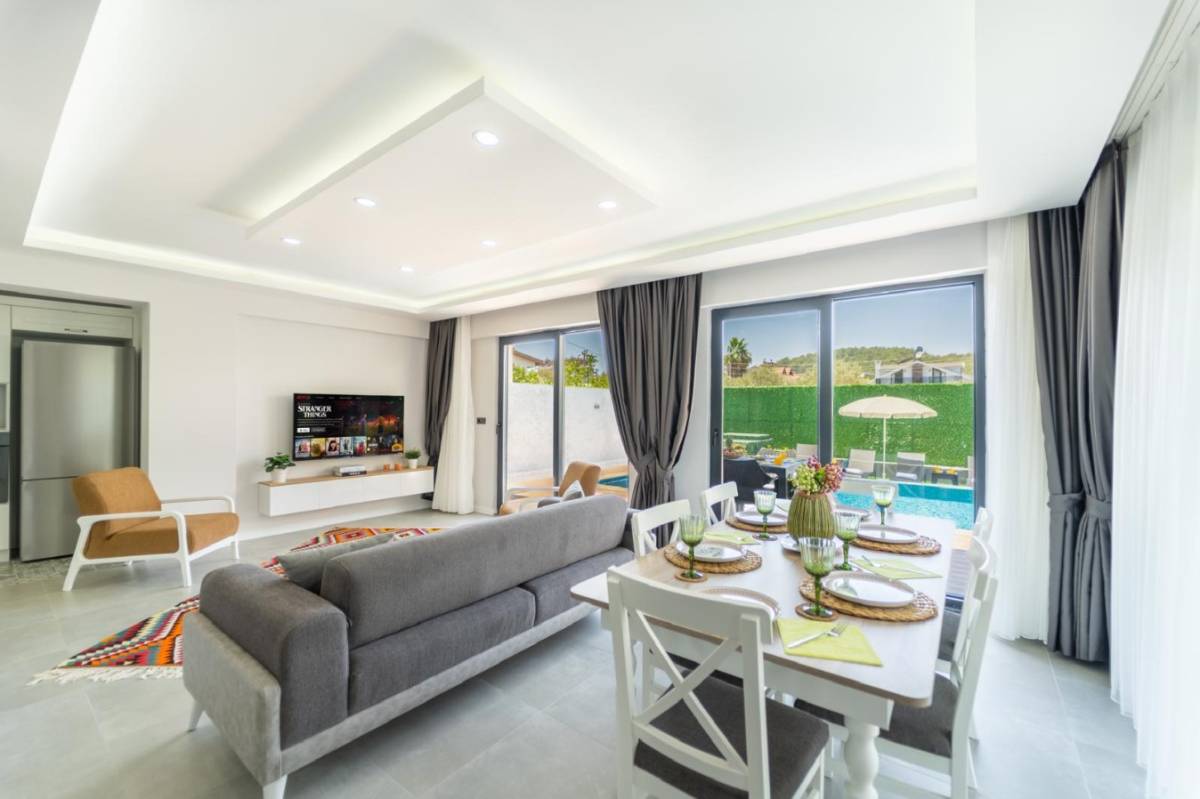 Salon : Salon içerisinde şık bir oturma grubu, berjer, TV, klima, yemek masası & sandalyeleri ve havuz terasına direkt çıkış yer almaktadır. (Ortak wc bulunmaktadır.)