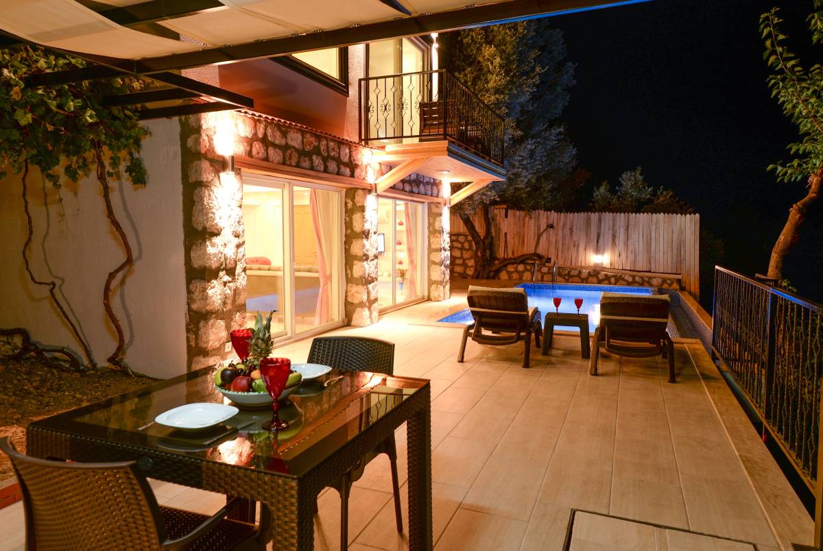 Villa Saten, Üzümlü Lapaz Bölgesinde yer almaktadır. Villamız doğa manzaralı özel yüzme havuzlu 2 yatak odalı 4 kişilik kapasiteye sahip aileler ve balayı çiftleri için ideal seçeneklerimizdendir. Her 2 yatak odasında jakuzi bulunmaktadır. İkinci yatak odası 2 nci katta olup dışarıdan bağımsız olarak giriş yapılmakta olup bütün mutfak araç gereçleri bağımsız olarak 2 nci yatak odasında yer almaktadır.