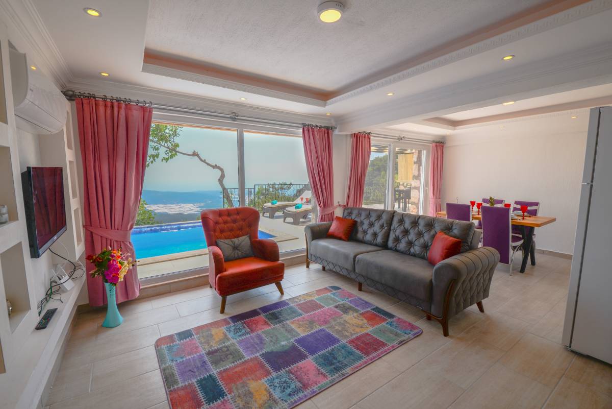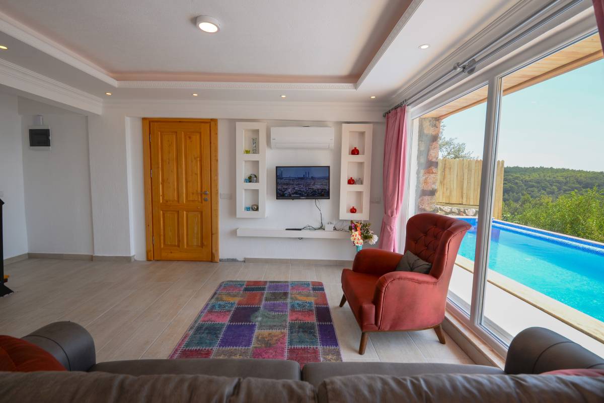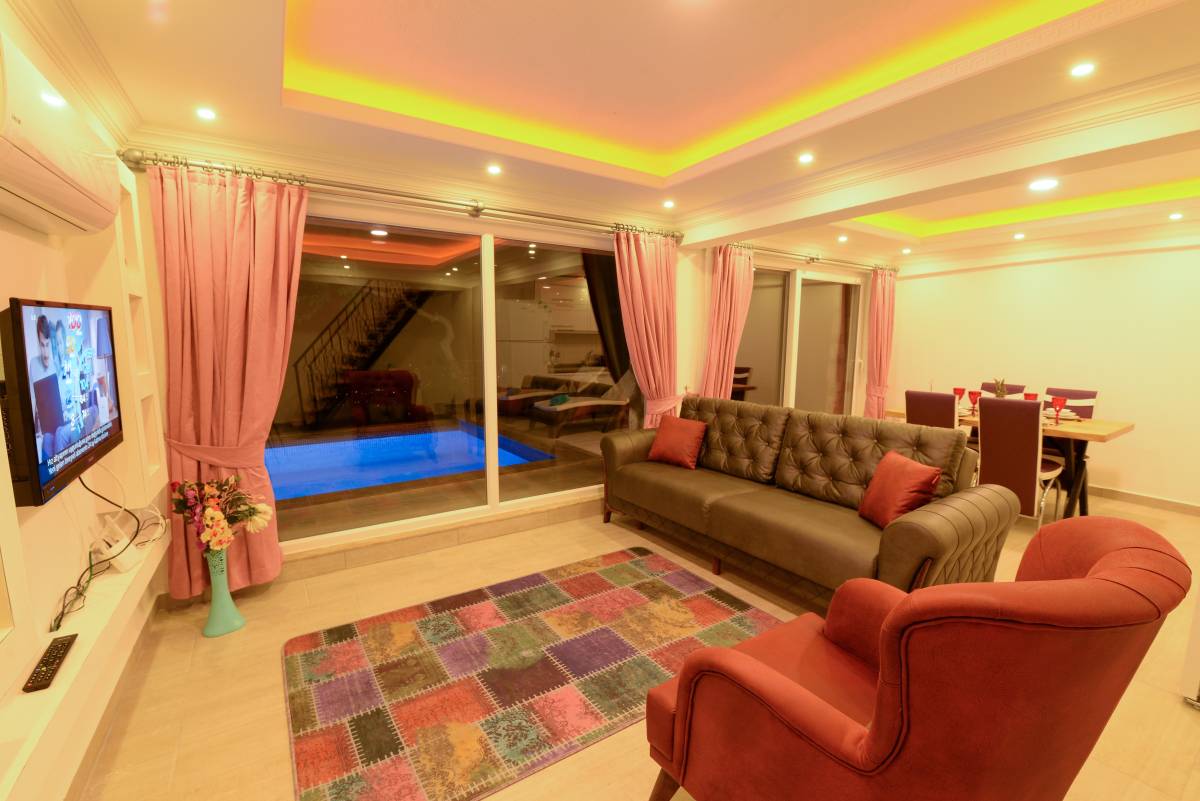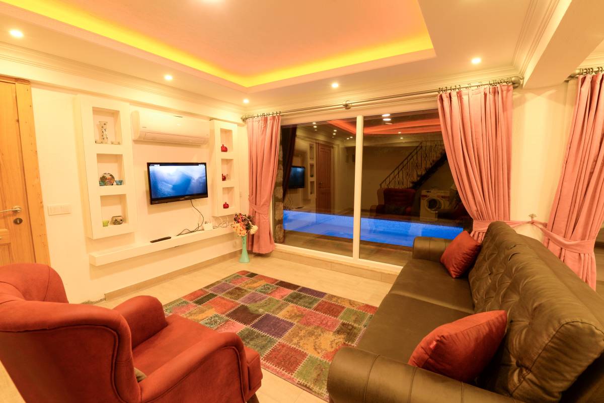 Salon: Salonda klima uydu alıcı, TV, DVD Player, oturma grubu, koltuğu, lavabo yer almaktadır. Salon havuz katındadır. En üst katta dinlenmek ve güneşlenmek için çok geniş bir seyir terası daha vardır. Bu alanda da oturma gurubu, masa ve sandalye bulunur.