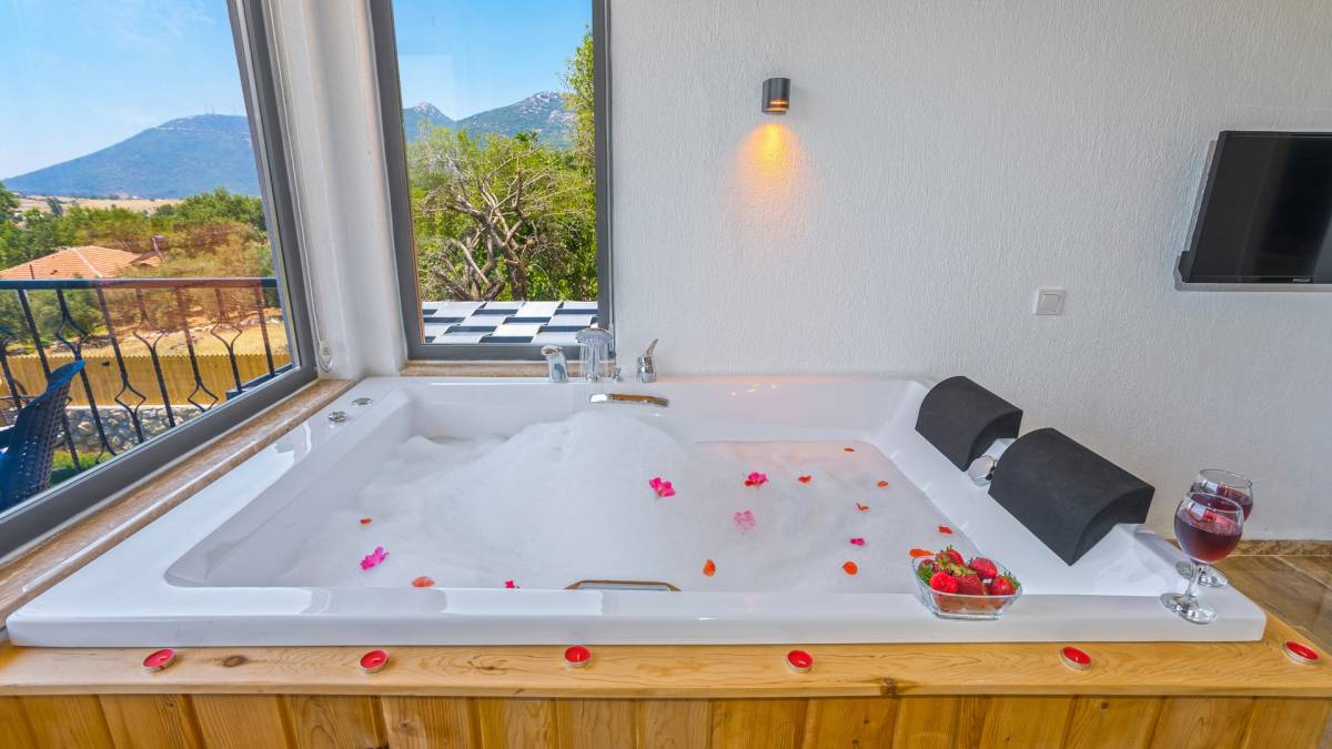 2. Yatak Odası: 1 adet çift kişilik, jakuzi ,klima, TV komodin, elbise dolabı, makyaj masası banyo ve tuvalet bulunmaktadır.