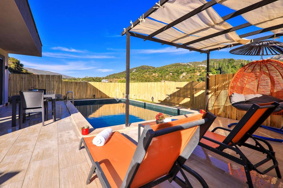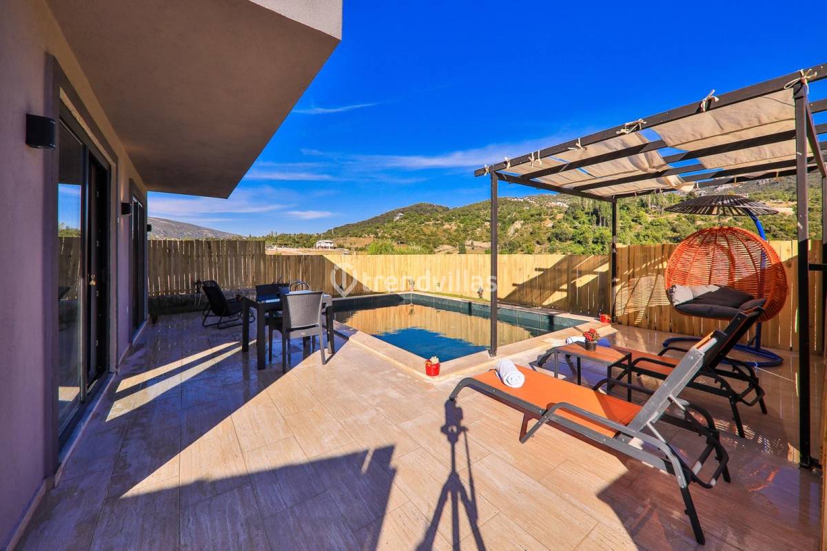 Villa Serenity 3, Türkiye’nin turizm merkezi Kalkan’ın Sarıbelen bölgesinde bulunmaktadır. Doğa manzarasına sahip olan lüks villamız, misafirlerinin tüm ihtiyaçlarına cevap verecek şekilde dizayn edilmiştir. Oldukça şık ve modern dokusuyla dikkatleri üzerine çeken, balayı çiftleri düşünülerek inşaa edilen tek katlı villamızda toplam 1 yatak odası bulunmakta olup, 2 kişi konaklama kapasitelidir. Yatak odasında jakuzi bulunmaktadır. Villa Serenity 3, muhafazakar konseptteki korunaklı havuzuyla, gözlerden uzak şık, konforlu bir tatil geçirmek isteyen misafirlerini bütün ihtişamıyla beklemektedir.
