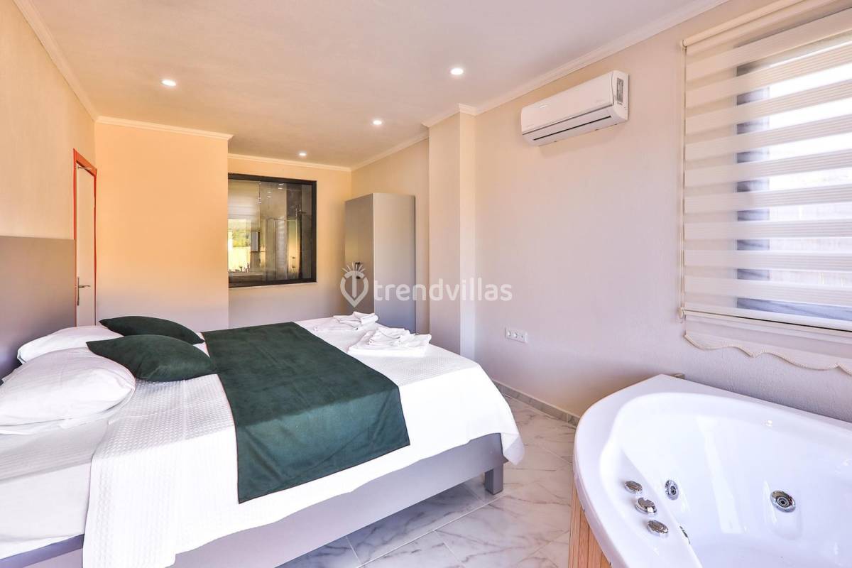 1.Yatak Odası : Suit aile yatak odasıdır. Yatak odasında çift Kişilik yatak, elbise dolabı, makyaj masası, jakuzi, komodin, banyo/WC ve havuz terasına çıkış bulunmaktadır.