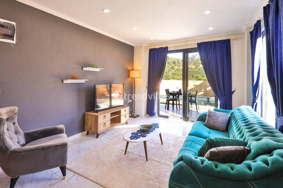 Salon : Salonda, Oturma Grubu, klima, orta sehpa, Wi-Fi modem, TV , uydu alıcı ve havuz terasına çıkış bulunmaktadır.