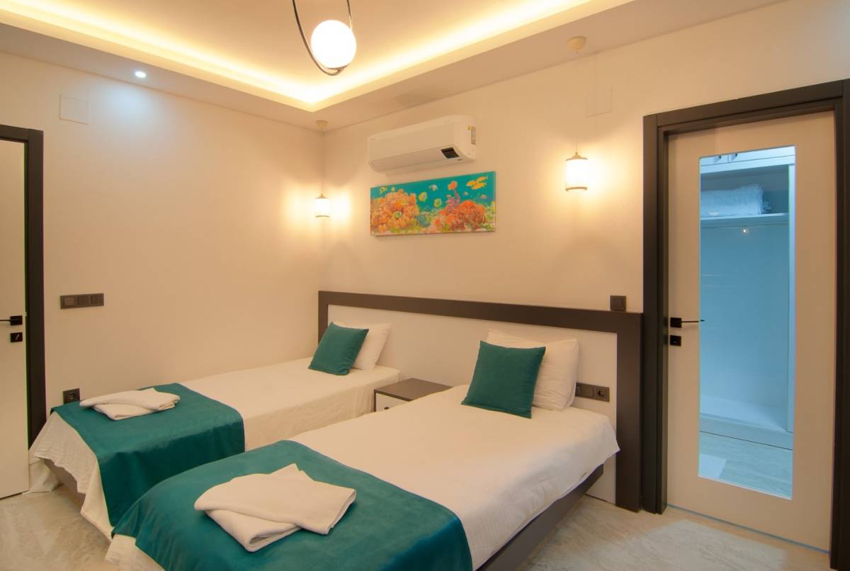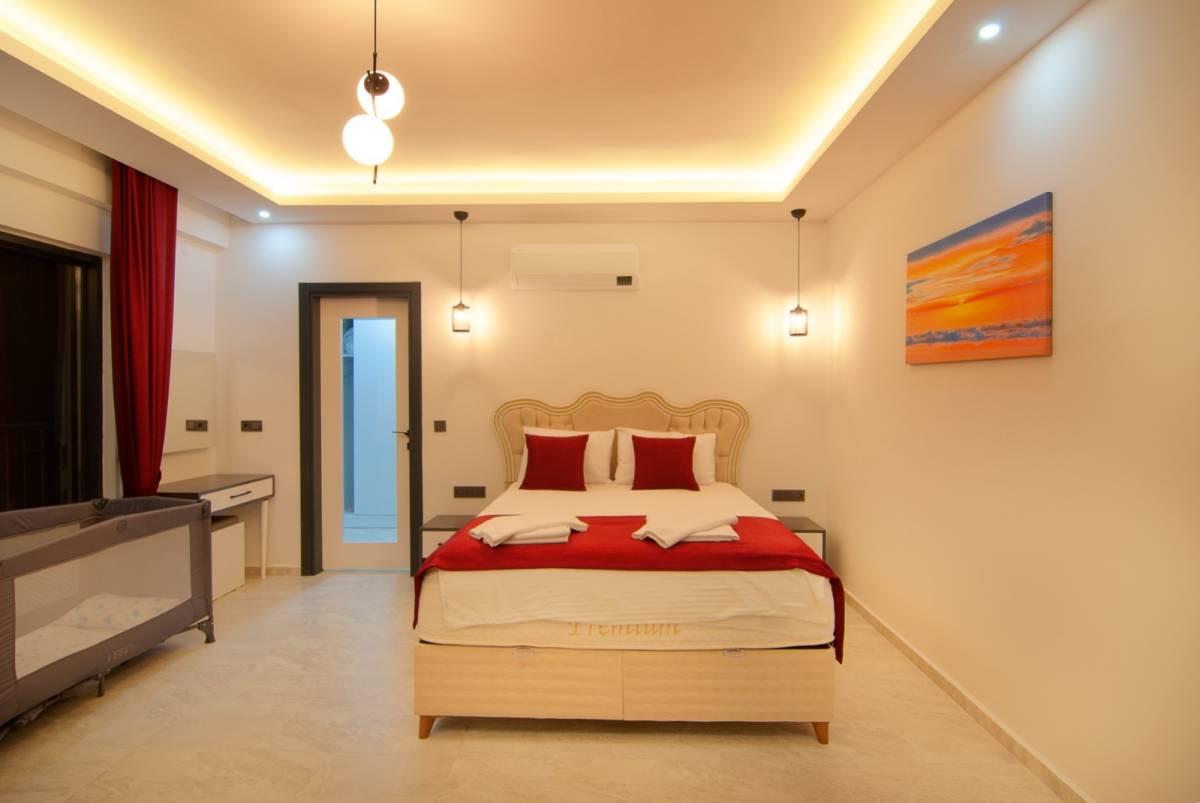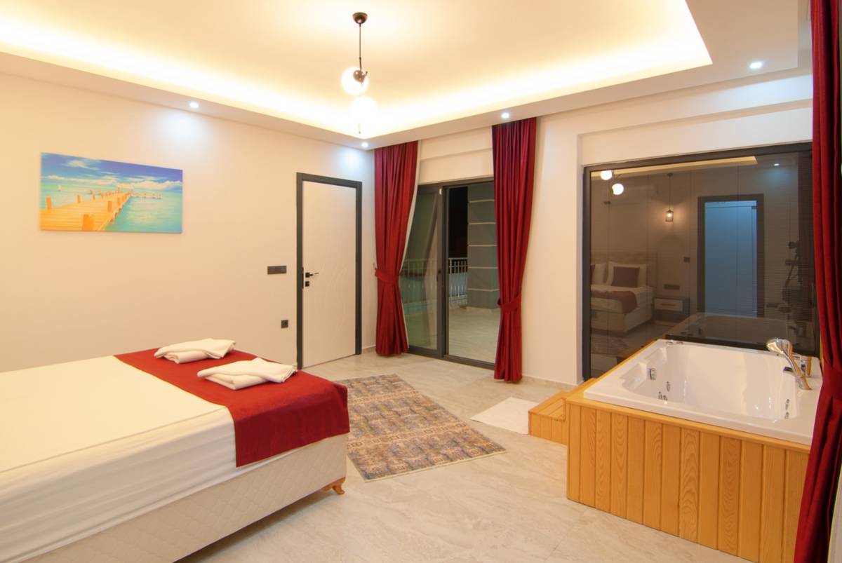 Zevkli ve kaliteli bir dizayna ve rengarenk dekorasyona sahip olan villamızda toplamda 4 yatak odası bulunmaktadır. Birinci yatak odası içerisinde bir çift kişilik yatak, jakuzi, ebeveyn banyosu ve klima; İkinci yatak odası içerisinde iki tek kişilik yatak, ebeveyn banyosu ve klima; üçüncü yatak odası bir çift kişilik yatak, ebeveyn banyosu, jakuzi ve klima; dördüncü yatak odası içerisinde iki tek kişilik yatak, ebeveyn banyosu ve klima mevcuttur. Ortak alanda salon-açık mutfak, klima, TV ve WC mevcuttur.