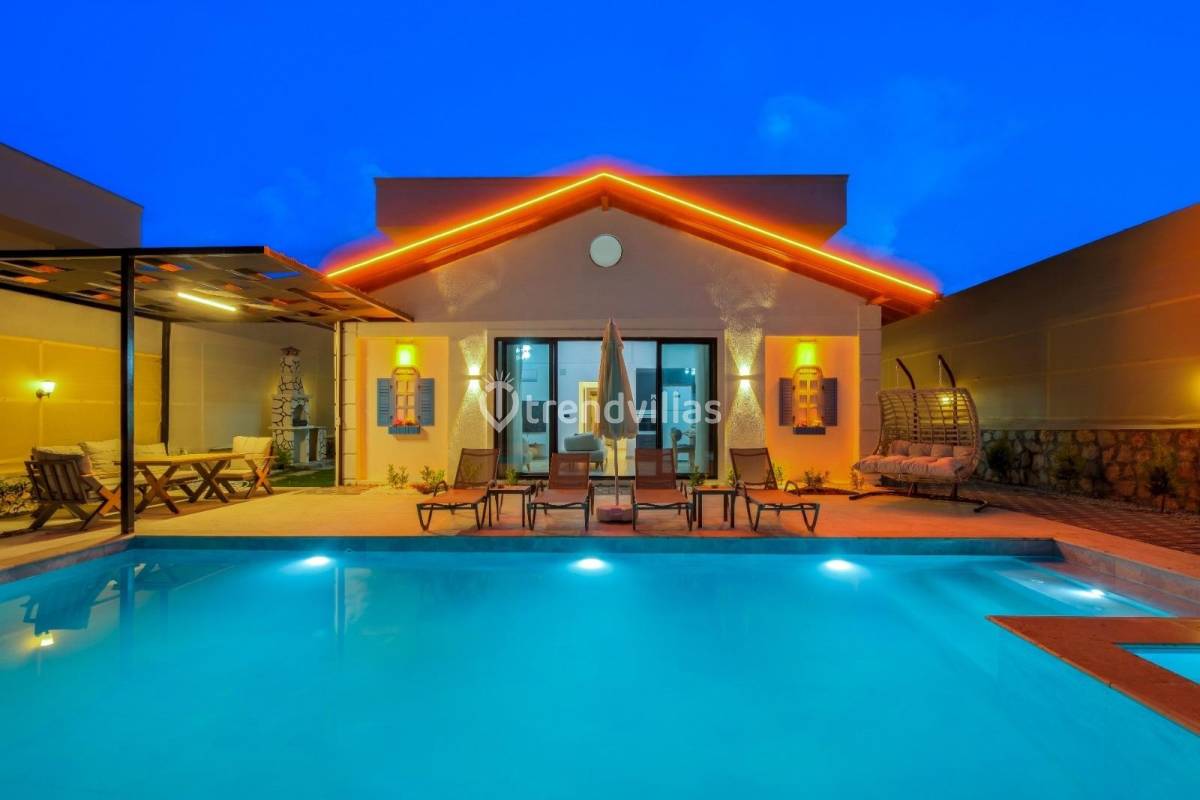 Salon: Özenle döşenmiş açık mutfaklı salon, modern koltuklar, 6 kişilik yemek masası, Lcd tv, uydu alıcısı ve klima bulunmaktadır. Salondan havuz ve bahçeye açılan kapısı mevcuttur.