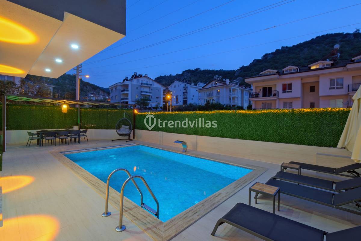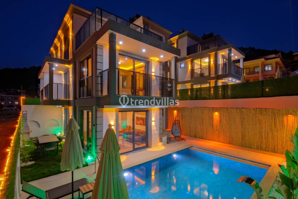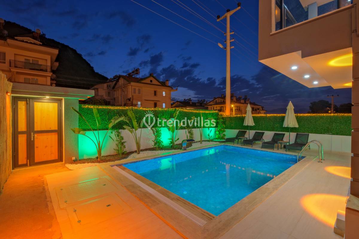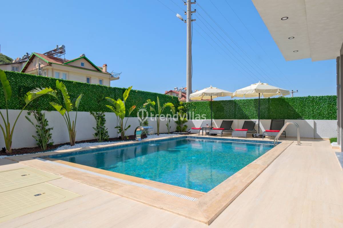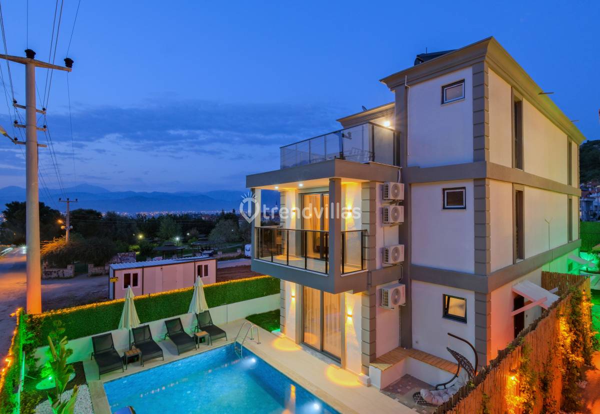 Villa Akar Sadem, Fethiye / Taşyaka bölgesinde yer alan özel havuzlu kiralık villalardan biridir ve aileler, balayı çiftleri veya doğa ile iç içe huzurlu tatil isteyenler için ideal bir konaklama seçeneği sunar. Villa, 3 yatak odası ve 3 banyosu ile toplamda 6 kişiye kadar konaklama kapasitesine sahiptir ve konforlu yaşam alanları ile tatil boyunca rahat bir deneyim sağlar. Taşyaka’nın yeşil ve sakin çevresi, denize yakın konumuyla Fethiye’nin turkuaz güzelliklerine kolay erişim imkânı sunar.