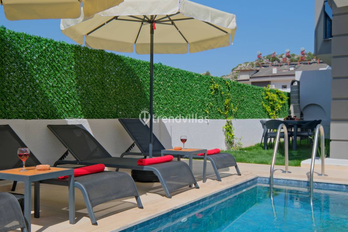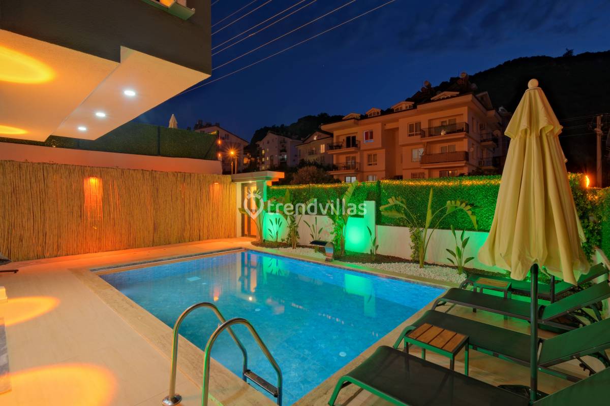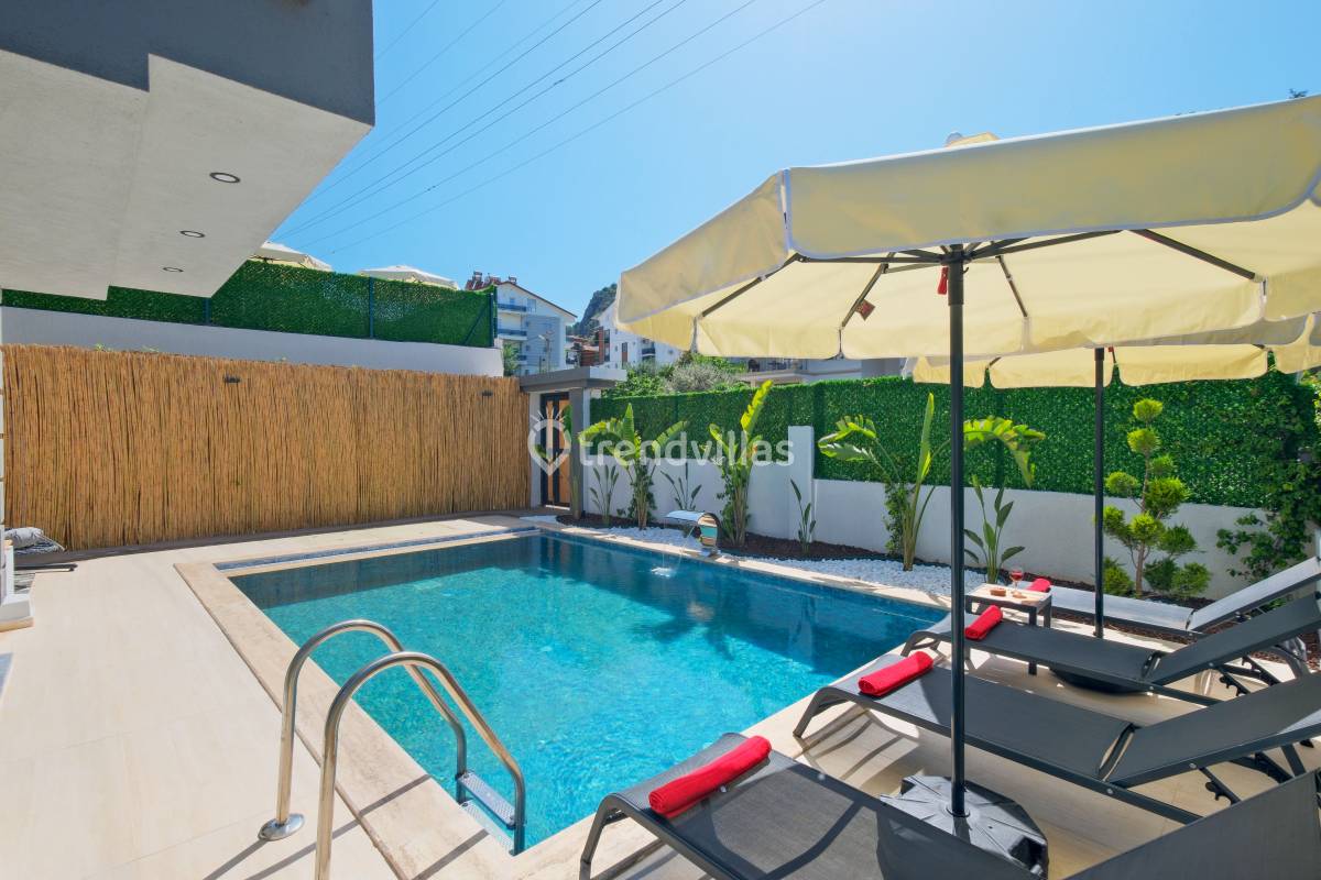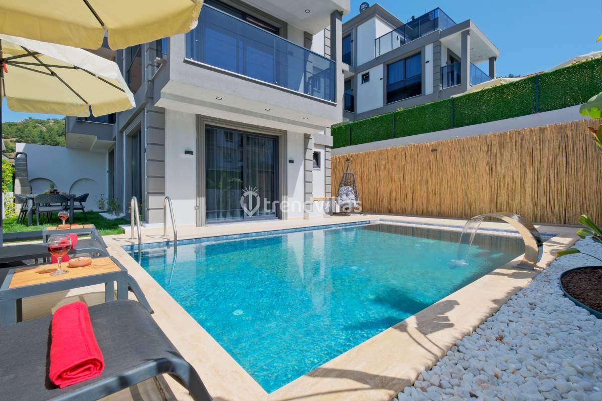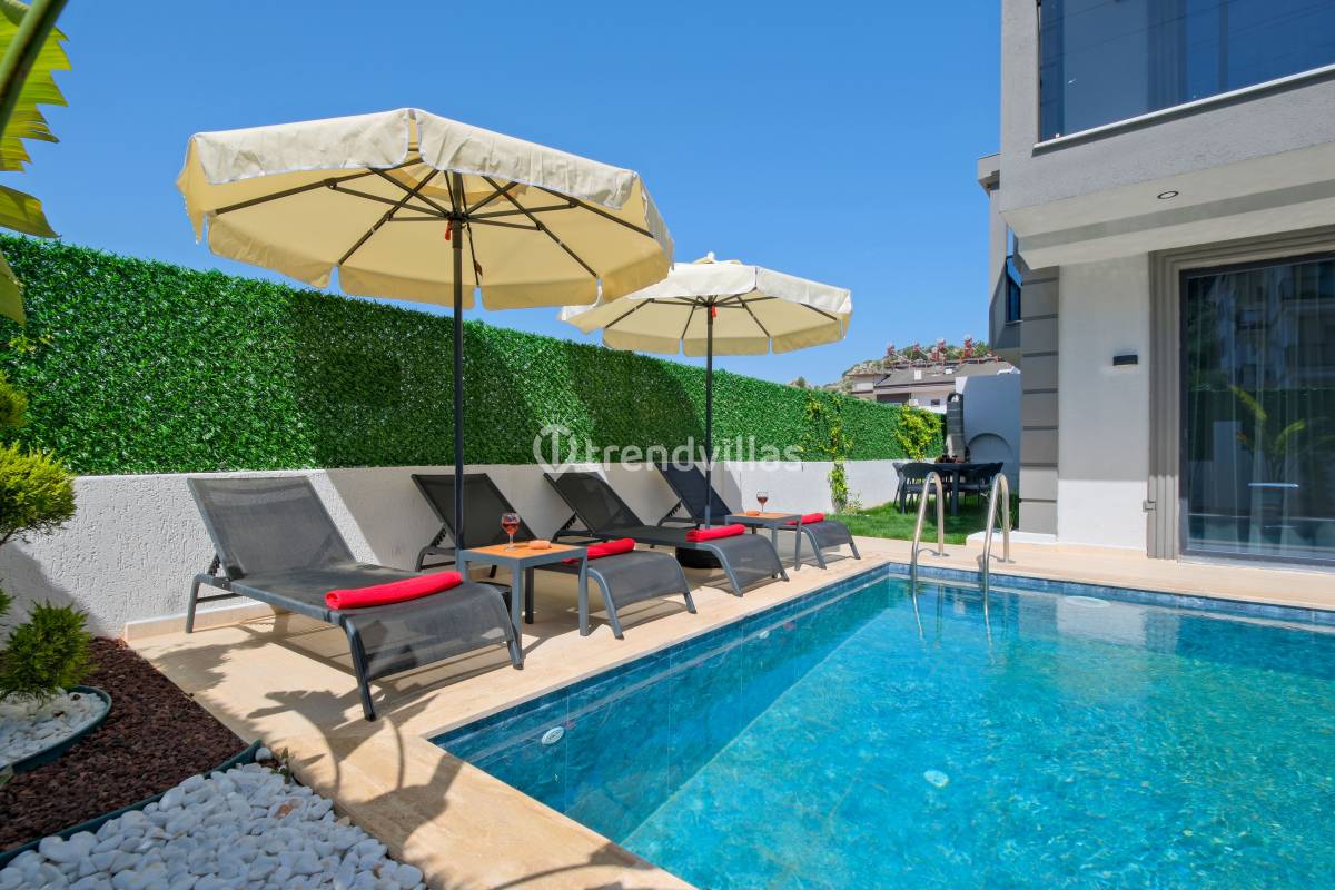 Villa Akar Sadem, Fethiye / Taşyaka bölgesinde yer alan özel havuzlu kiralık villalardan biridir ve aileler, balayı çiftleri veya doğa ile iç içe huzurlu tatil isteyenler için ideal bir konaklama seçeneği sunar. Villa, 3 yatak odası ve 3 banyosu ile toplamda 6 kişiye kadar konaklama kapasitesine sahiptir ve konforlu yaşam alanları ile tatil boyunca rahat bir deneyim sağlar. Taşyaka’nın yeşil ve sakin çevresi, denize yakın konumuyla Fethiye’nin turkuaz güzelliklerine kolay erişim imkânı sunar.