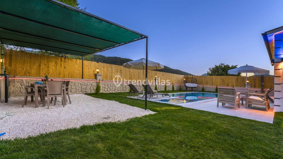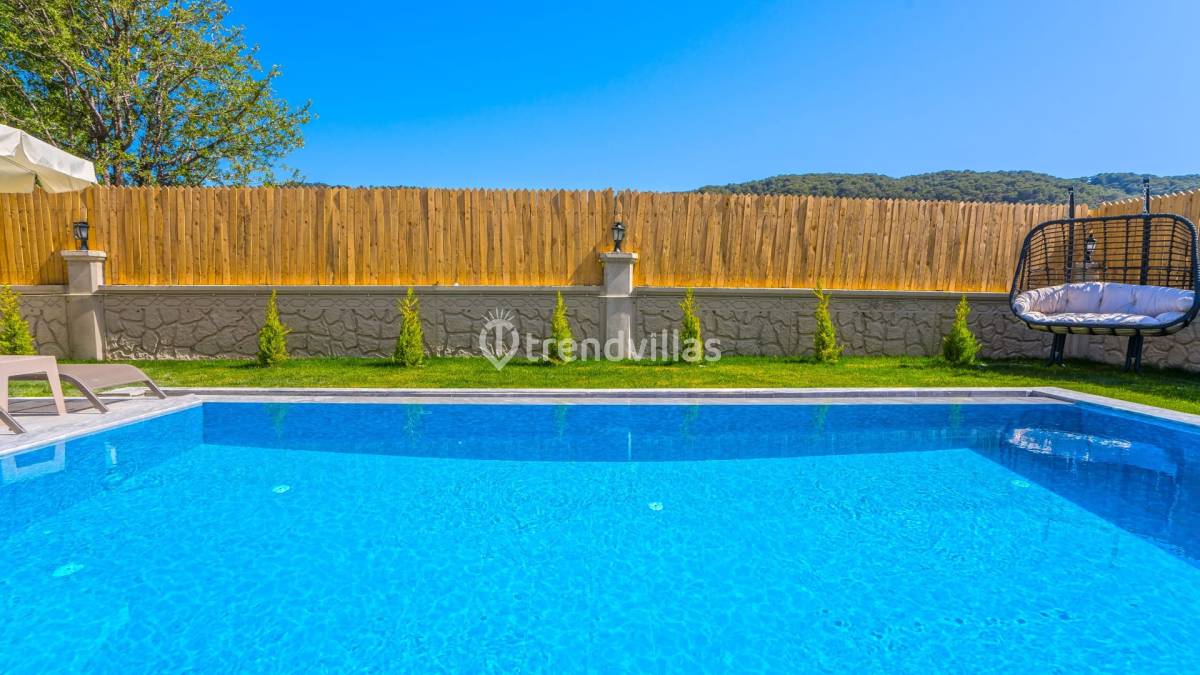 Havuz ve Bahçe: Villamızın havuzu ise etrafı dışarıdan görülmeyecek şekilde korunaklı olup sizlere huzurlu ve keyifli havuz deneyimi sunmaktadır. Bahçe mobilyası, barbekü, şezlong ve güneş şemsiyesi bulunmaktadır.