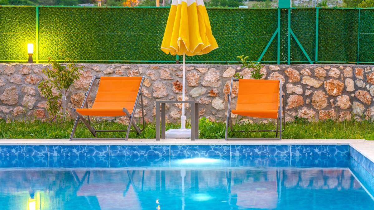 Kalkan'ın Sarıbelen köyünde yeşillikler içinde olan Villa Sarı, 2 yatak odalı havuz bölgesi dışarıdan görünmeyen muhafazakar bir villadır.