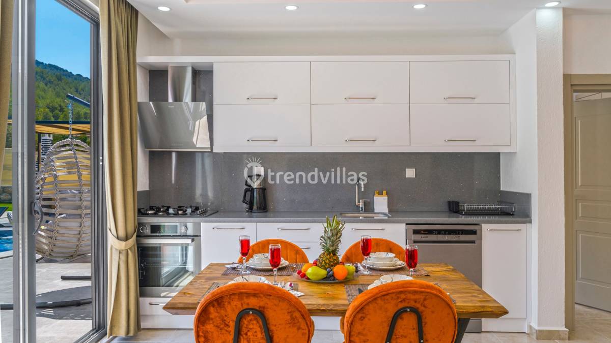 Mutfak: Villamızın mutfağında buzdolabı bulaşık makinası, çamaşır makinası, 4'lü ocak, ketıl, mikro dalga fırın, türk kahvesi makinesi,tost makinesi ve yemek takımı bulunmaktadır.