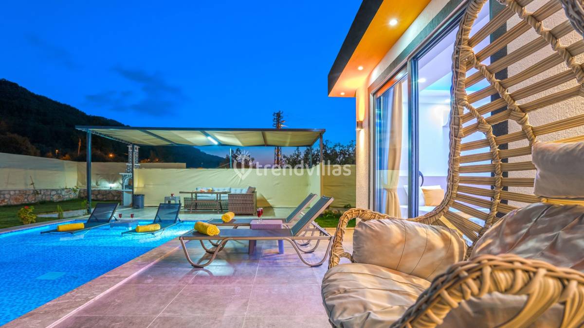 Villa Gökalan, Kalkan’ın doğayla iç içe bölgelerinden Sarıbelen’de konumlanan, sakin atmosferi ve ferah dış alanlarıyla öne çıkan özel bir tatil villasıdır. Panoramik olarak çam ormanlarına bakan doğa manzarası, villanın bulunduğu çevreyle bütünleşen huzurlu bir tatil ortamı sunar. Kalabalıktan uzak konumu, dingin ve rahat bir konaklama arayan misafirler için ideal bir yapı oluşturur.
