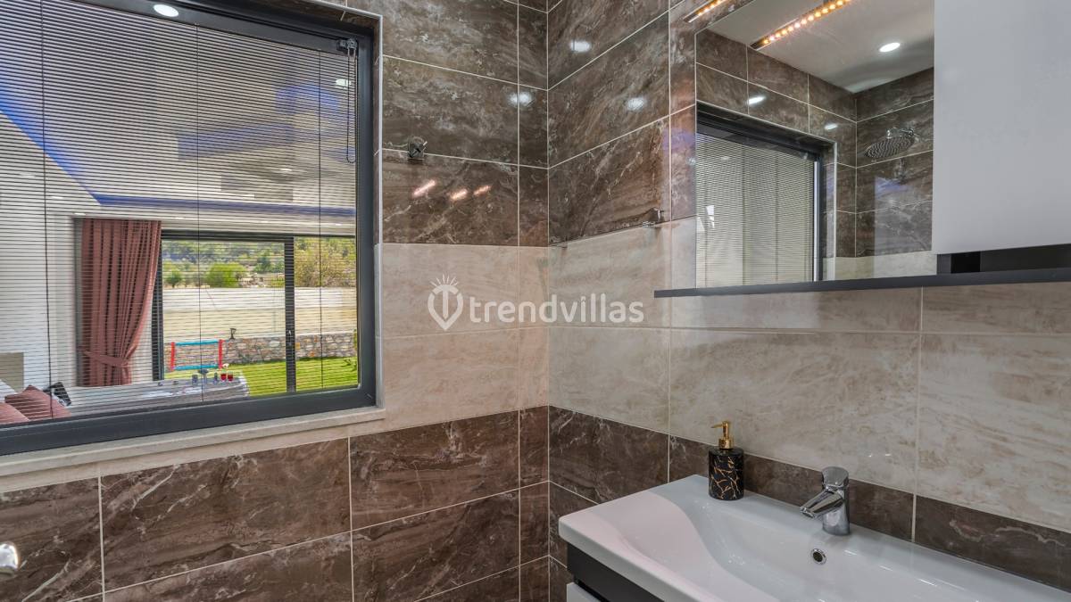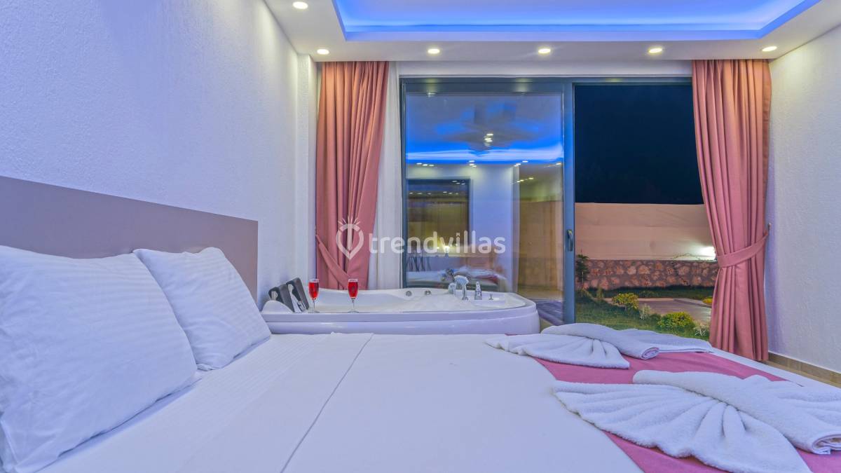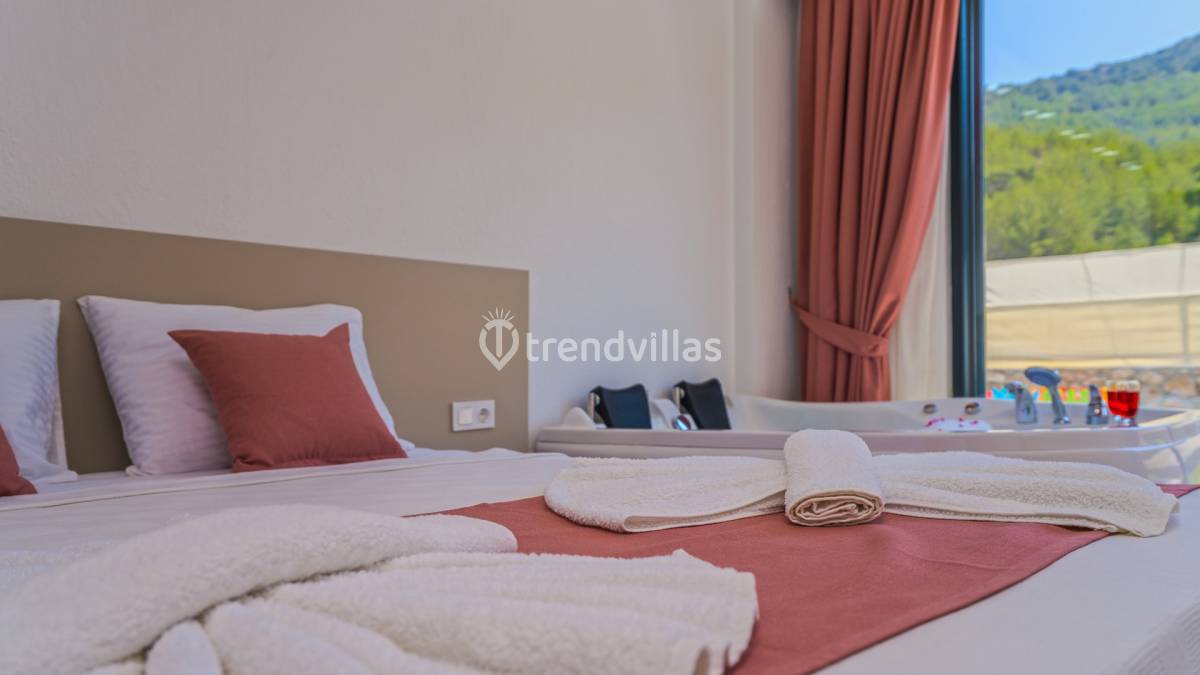 Yatak odalarından biri jakuzili olup, tatil boyunca dinlenme ve rahatlama imkânını tamamlayan özel bir detay sunar. Odalar, sakin bir uyku ve kişisel alan ihtiyacını karşılayacak şekilde düzenlenmiştir.