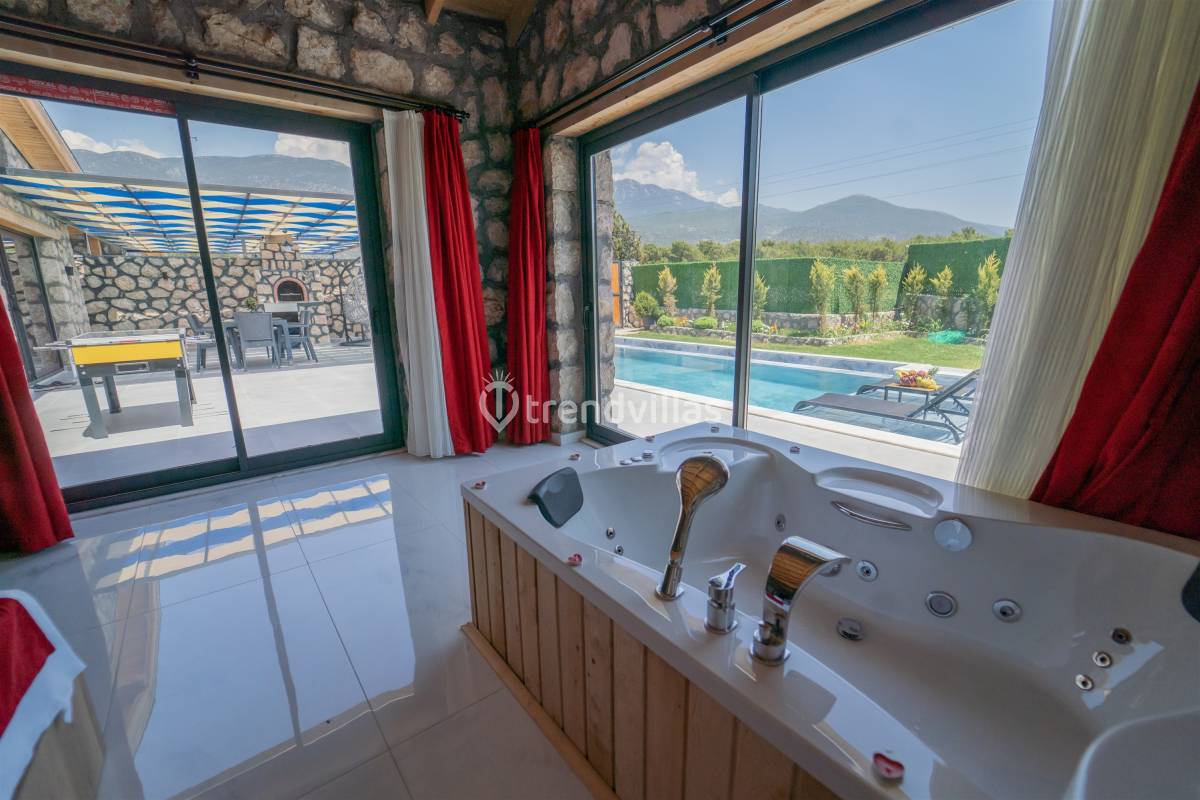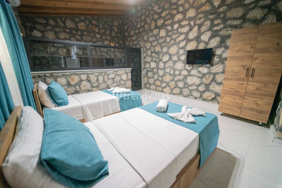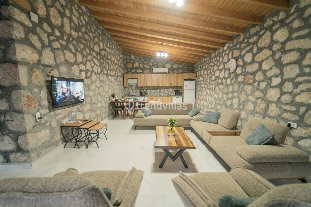 Villa Gretna 2, Kalkan/Çavdır Köyü’nde 2 yatak odalı 4 kişi konaklama kapasiteli kiralık villadır. Taş bina konseptinde, modern ve şık dizaynı ile gözleri üzerine çeviren Villa Gretna 1 Uno, çekirdek aile ve balayı çiftleri için oldukça uygundur. Doğa ile iç içe kuş cıvıltıları eşliğinde havuzda yüzmenin, şezlongda güneşlenmenin keyfini çıkarabilirsiniz. Doğa manzaralı olan villamız, tek katlı yapıda olup, geniş bahçesi, barbekü alanı ve geniş ve ferah Amerikan mutfak gibi özelliklerle donatılmıştır. Çocuklu ailerin keyifli vakit geçirebilmeleri için, çocuk oyun parkı villada mevcuttur. Yoğun şehir hayatının karmaşasından uzakta ruhunuzu dinlendireceğiniz bir villa tatilini sizlere sunmaktadır.