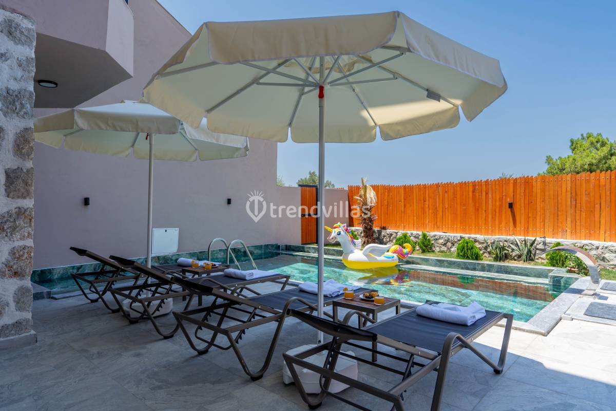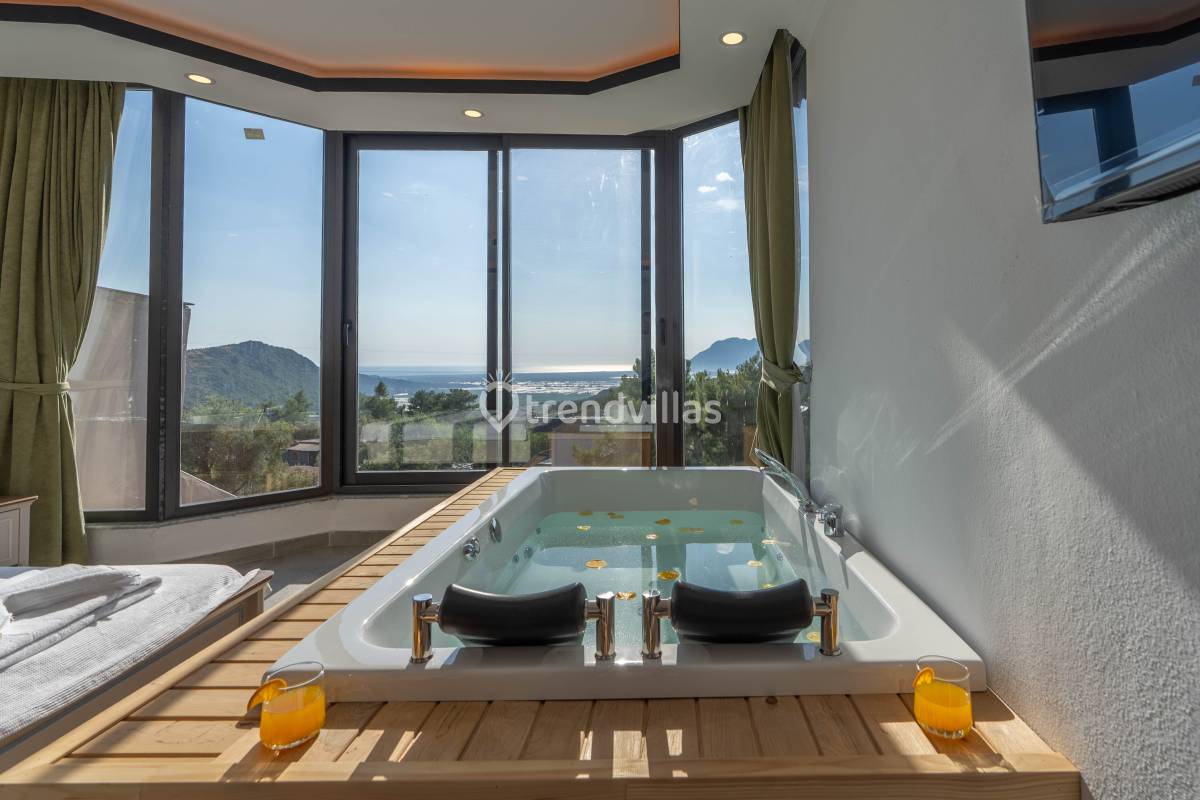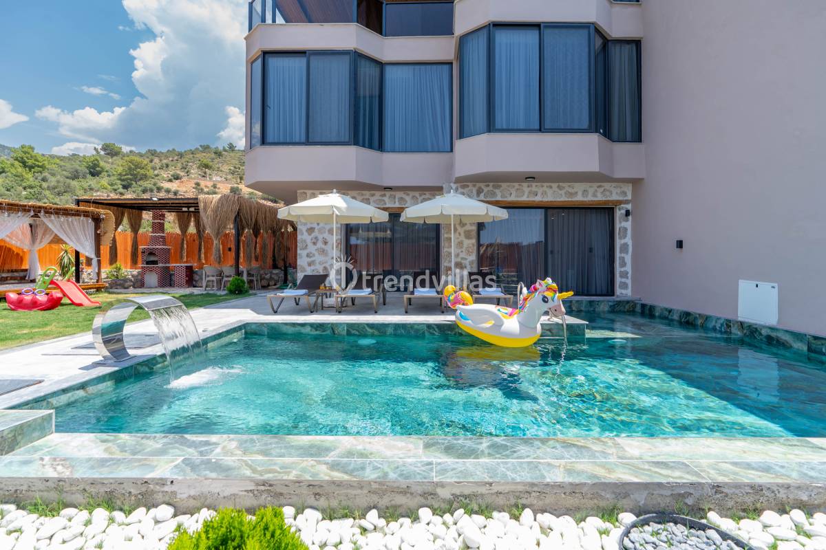 Kalkan ’ın Üzümlü Köyünde 5 dönüm arsa içerisinde yemyeşil bir ormanın içerisinde bulunan villamız da rahatınız için gerekli her şey düşünülmüştür. Geniş havuzu ve yemyeşil ağaçların bulunduğu geniş bahçesinin keyfine doyamayacaksınız. Gözlerden uzak, sakin ve doğa ile iç içe olan villamız, korunaklı olması yönünden muhafazakar ailelerin seçim noktasıdır. Son derece lüks döşenen villamız 2 adet suit yatak odasıyla geniş ve uzun bir ön balkona sahiptir, her odadan balkona çıkış ve balkonda oturmak için masa, sandalye mevcuttur. Kablosuz internet bağlantısı vardır.