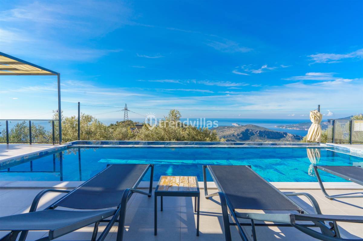 Villanın iç mekânı modern ve ferah bir anlayışla tasarlanmıştır. Açık plan salon ve tam donanımlı mutfak, tatiliniz boyunca ihtiyacınız olan tüm ekipmanları sunar. Geniş camlar sayesinde deniz manzarası yaşam alanının her köşesine taşınır ve keyifli bir atmosfer oluşturur.