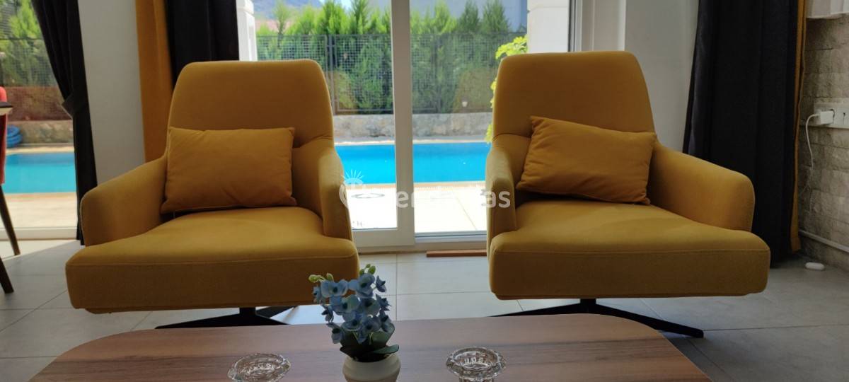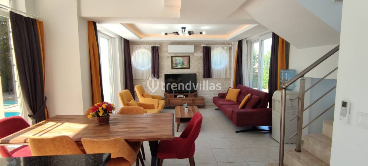 Salon: Son derece şık modern ve konforlu bir koltuk takımı, yemek masası ve sandalyeleri, klima, televizyon ve internet erişimi için Wİ-Fİ cihazı bulunmaktadır.