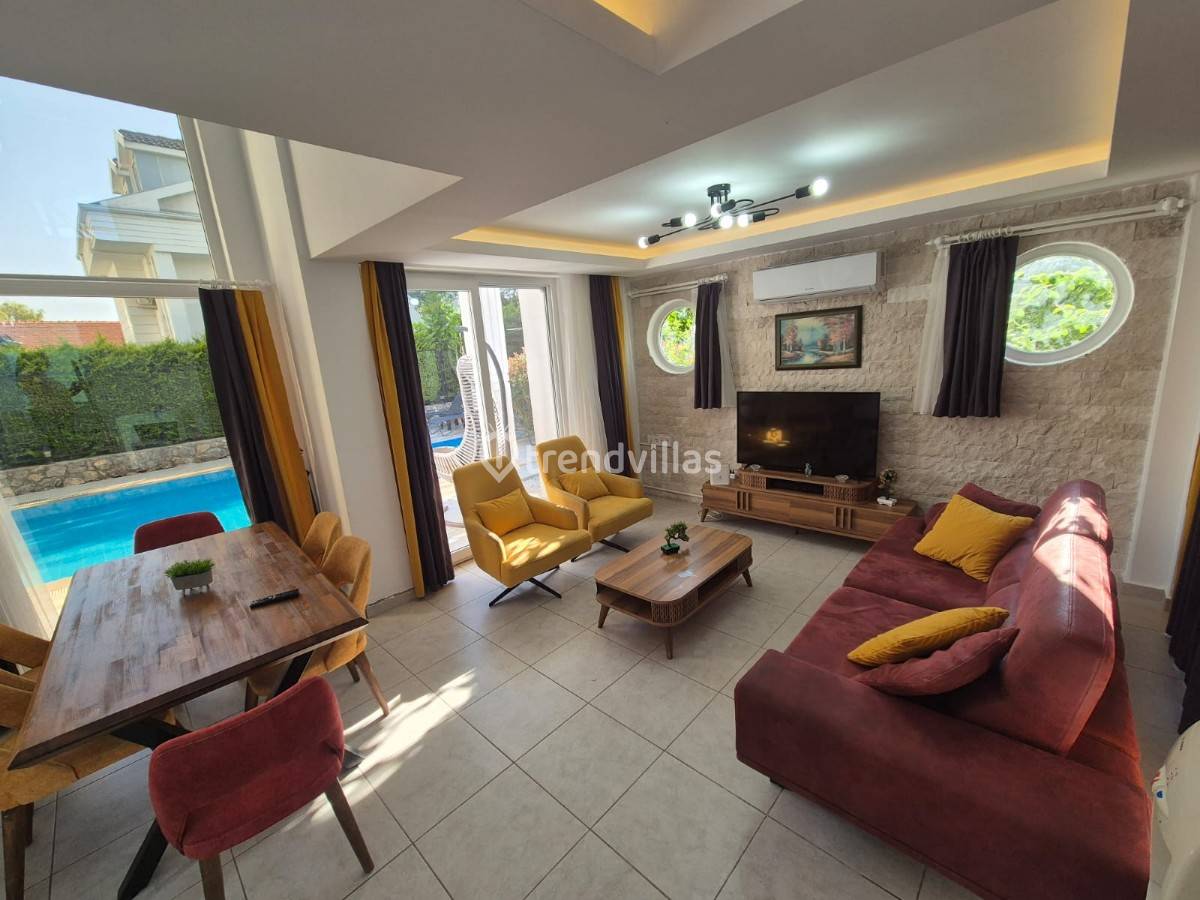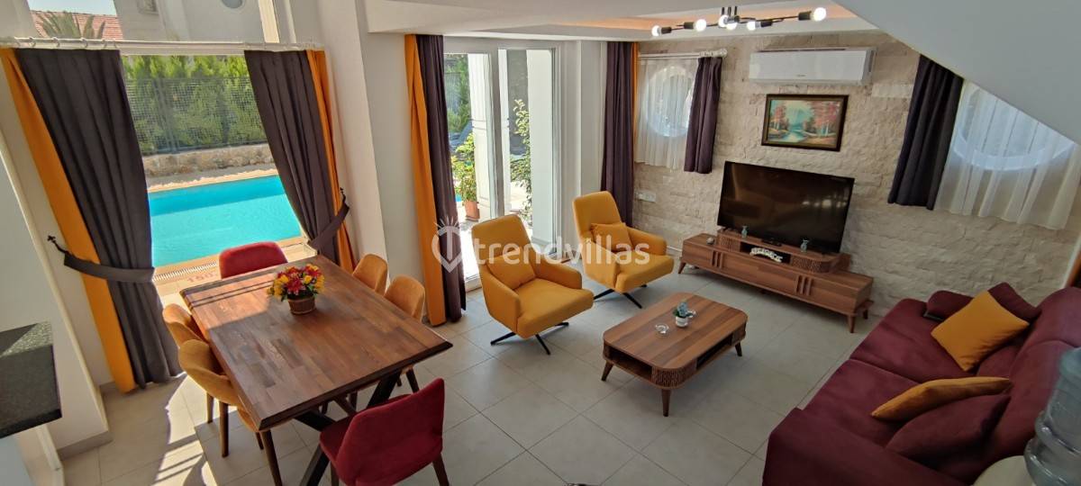 Bahçe: Müstakil bahçe içerisinde yüzme havuzu, şezlong, güneş şemsiyesi, yemek masası, salıncak, açık duş, barbekü ve otoparkı bulunmaktadır.