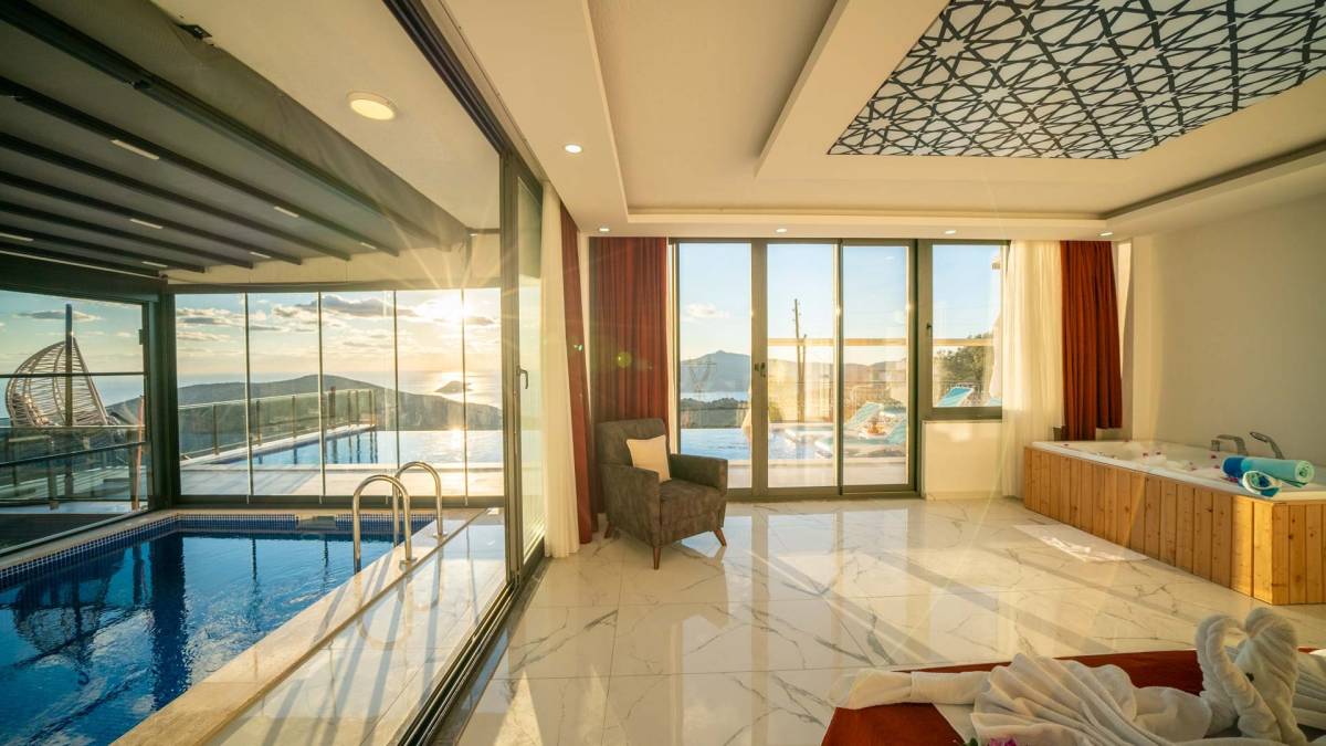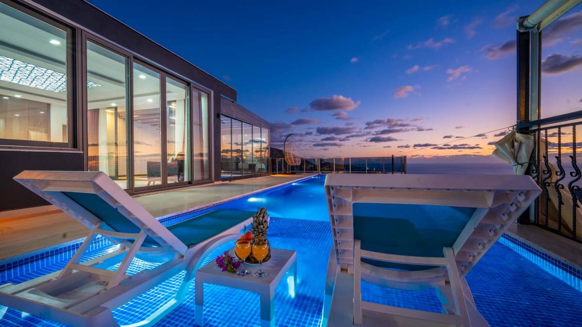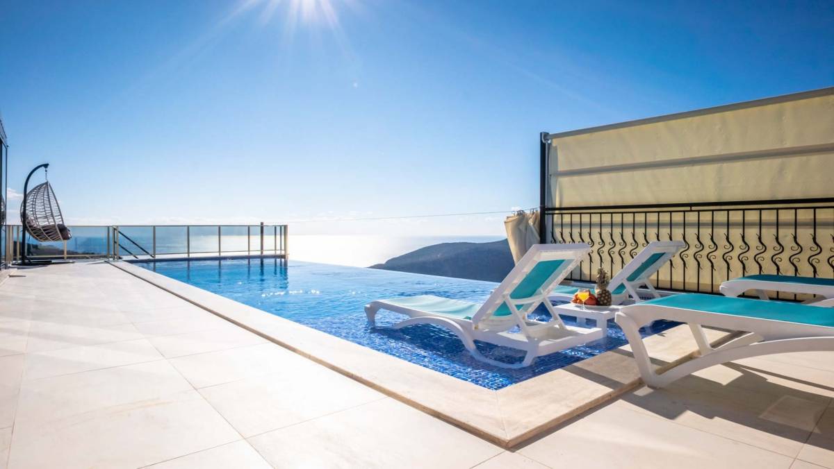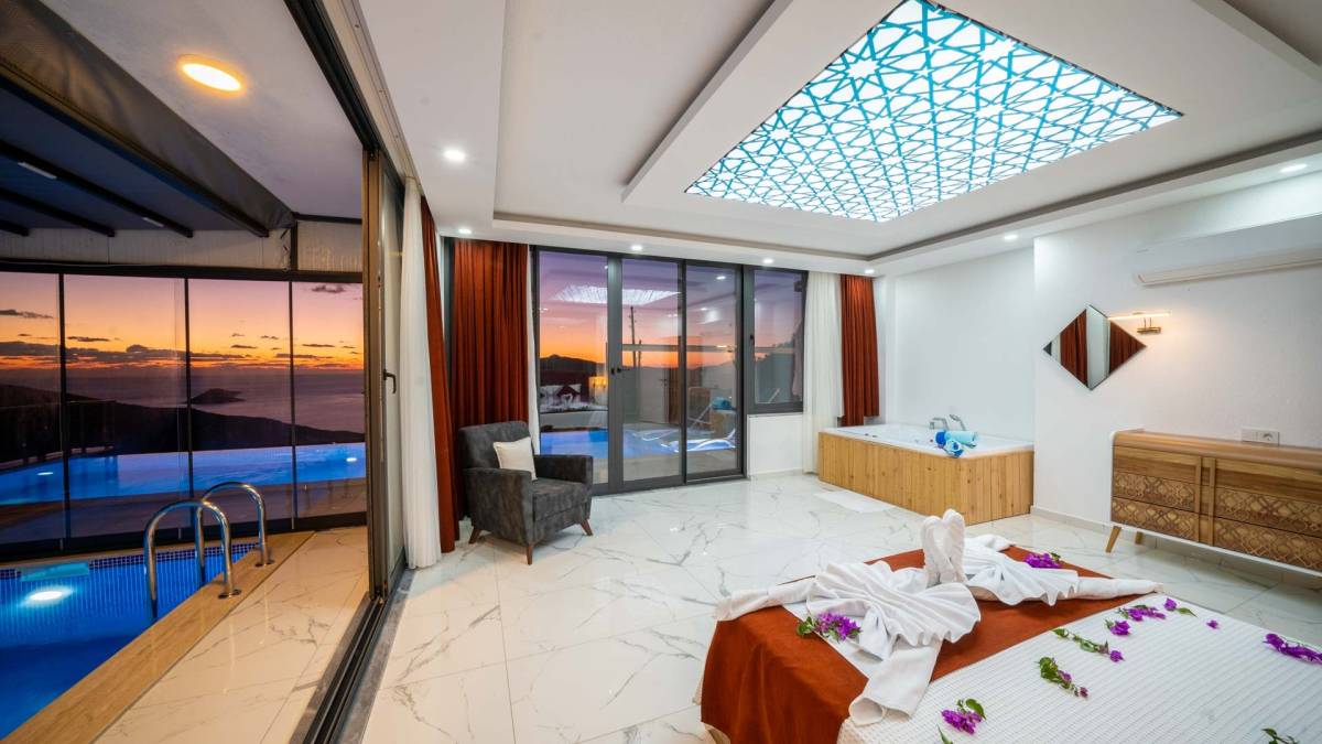 Kalkan Kördere mevkiisinde konumlanmış kiralık balayı villası , huzurlu ve konforlu bir tatil isteyen konuklarımız için en ideal seçeneklerden bir tanesidir. Isıtmalı havuzu ile de 12 ay yaz kış aktif olan olan villamız ısıtmalı havuzlu villa ve muhafazakar villalar kategorisinde yer almaktatıdir. Villamız da ısıtmalı havuzun yanında jakuzi de bulunduğu için için kış aylarında da çokça tercih edilmektedir. Havuzu korunaklı (Havuzun dışarıdan gözükmediği anlamına gelir) özelliği ile mahremiyete önem veren misafirlerimiz için tatil imkanı sunmaktadır.
