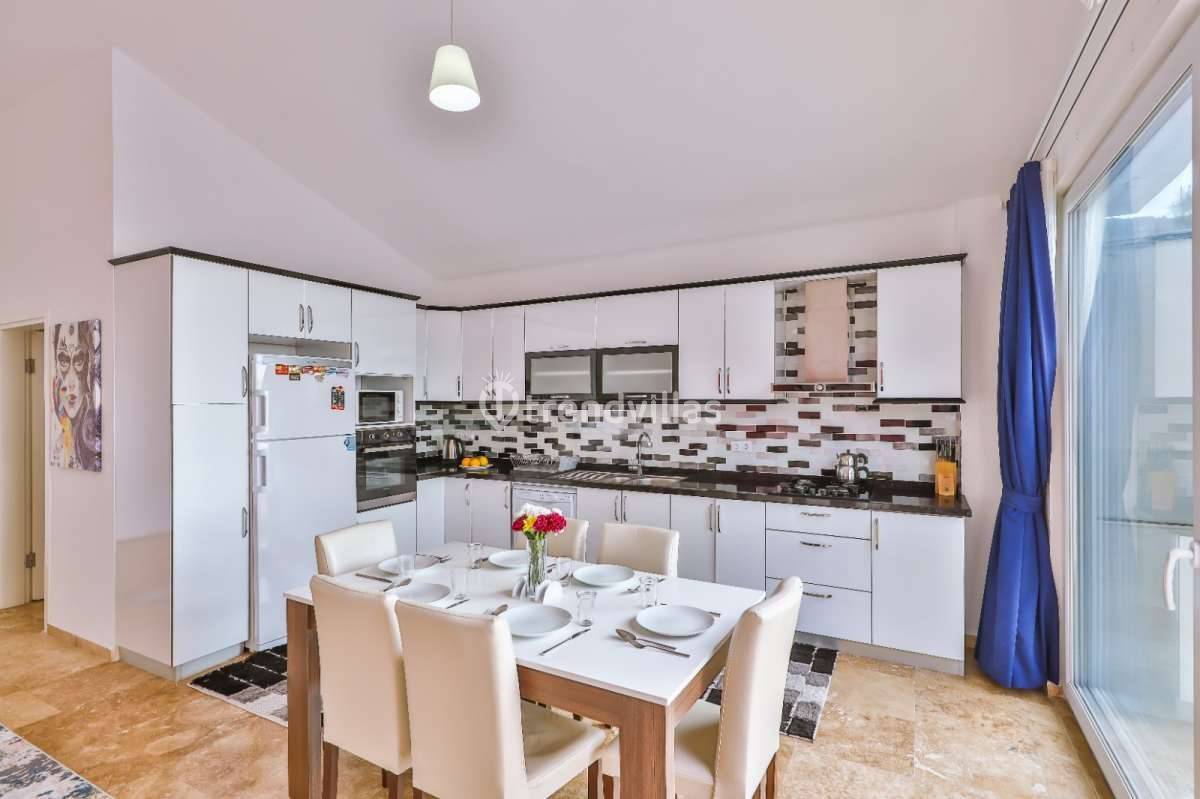 Villa Swiss rahat, geniş, lüks ve modern bir mutfağı vardır. buzdolabı, bulaşık makinesi, fırın, mikrodalga fırın, 4'lü ocak, ekmek kızartma makinesi, 8 kişilik yemek takımı, tava, tencereler, çatal, bıçak vb. Ayrıca tatil esnasında eksik bir ürün olursa bize söylediğiniz durumda hemen tedarik ediyoruz sizin için.