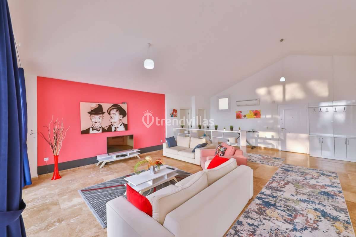 Salonumuzda rahat, modern, lüks oturma gurubu, tv ve uydu alıcısı, ütü masası, limitsiz kablosuz internet, havuz kıyısına ve bahçeye çıkış vardır.