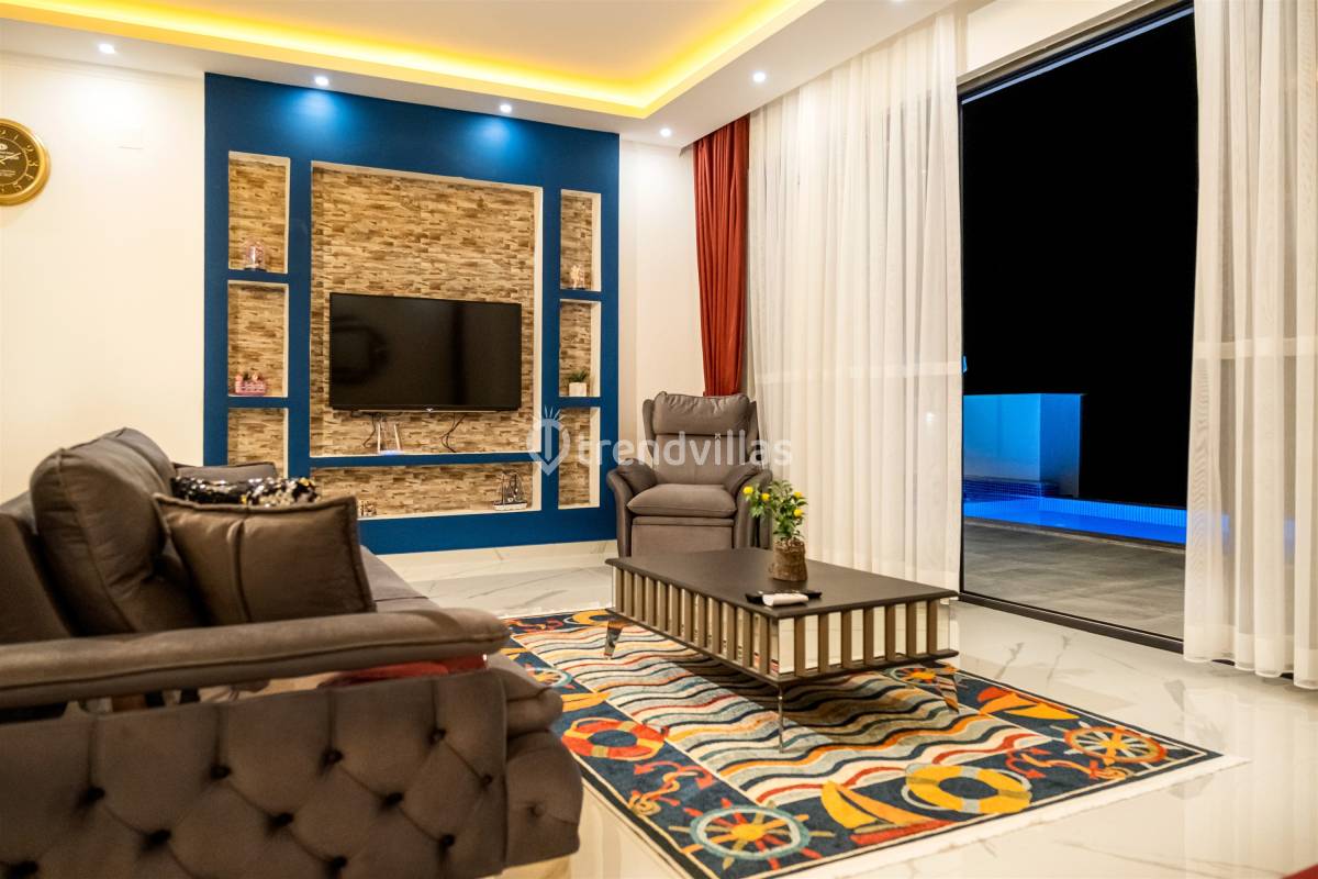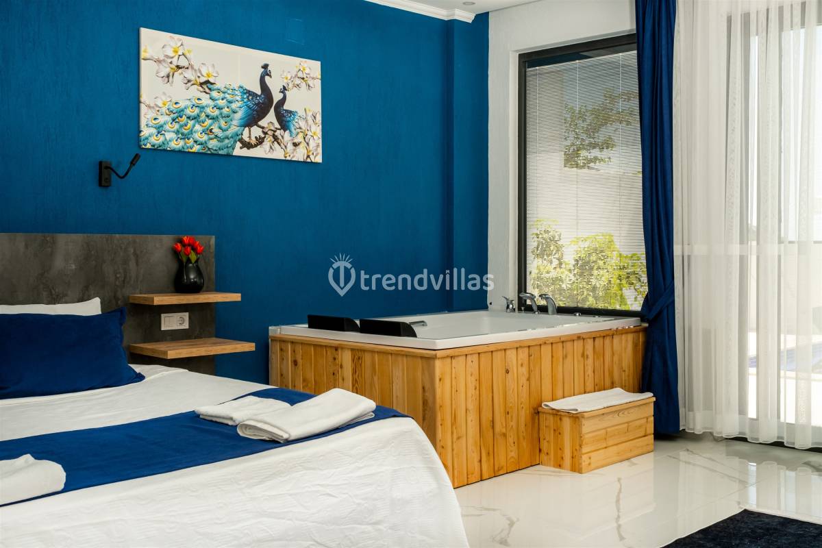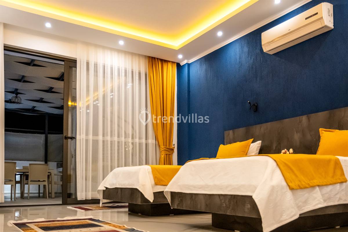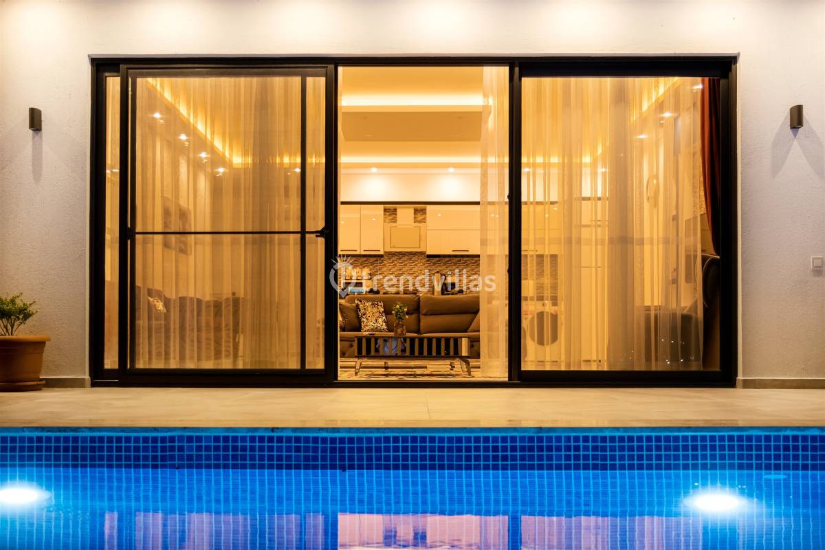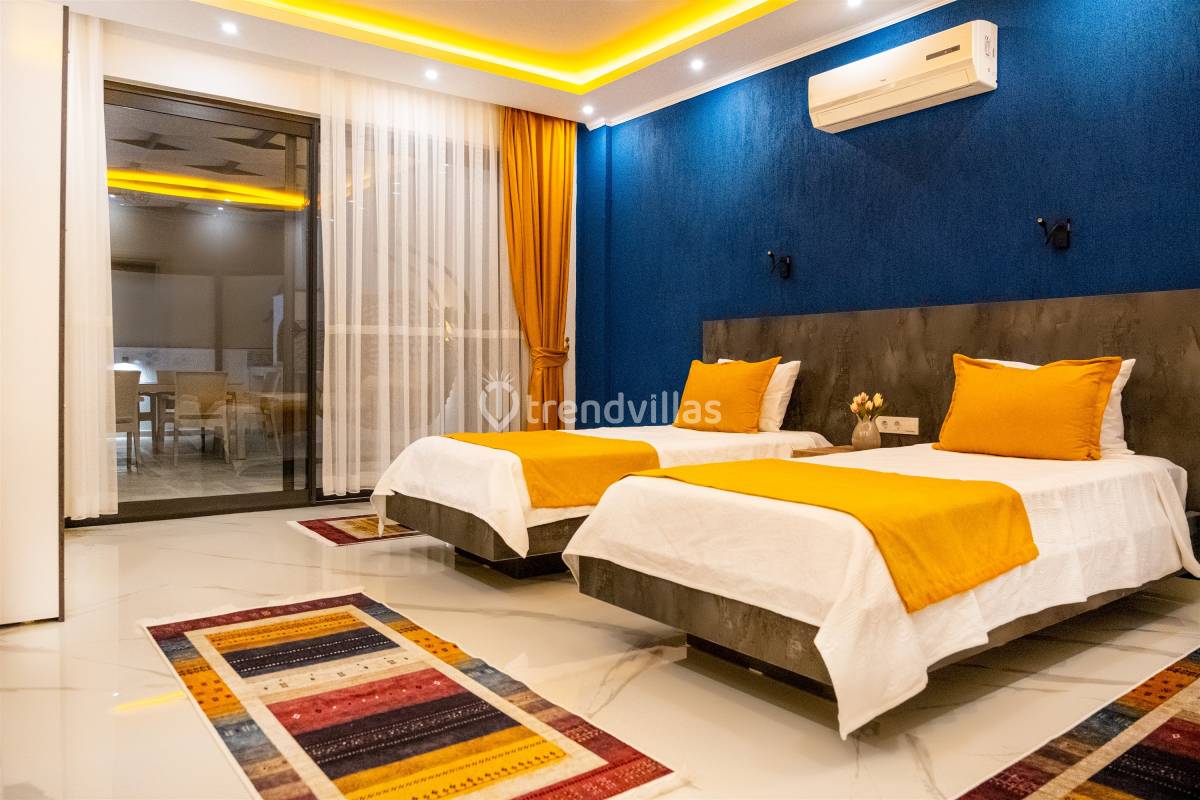 Villamızda iki yatak odası ve iki banyo bulunmaktadır. Birinci odada çift kişilik yatak, klima, jakuzi ve banyo; İkinci odada ise iki tek kişilik yatak, klima ve banyo bulunmaktadır. Salon içerisinde oturma grubu, televizyon, klima ve mutfak yer almaktadır.
