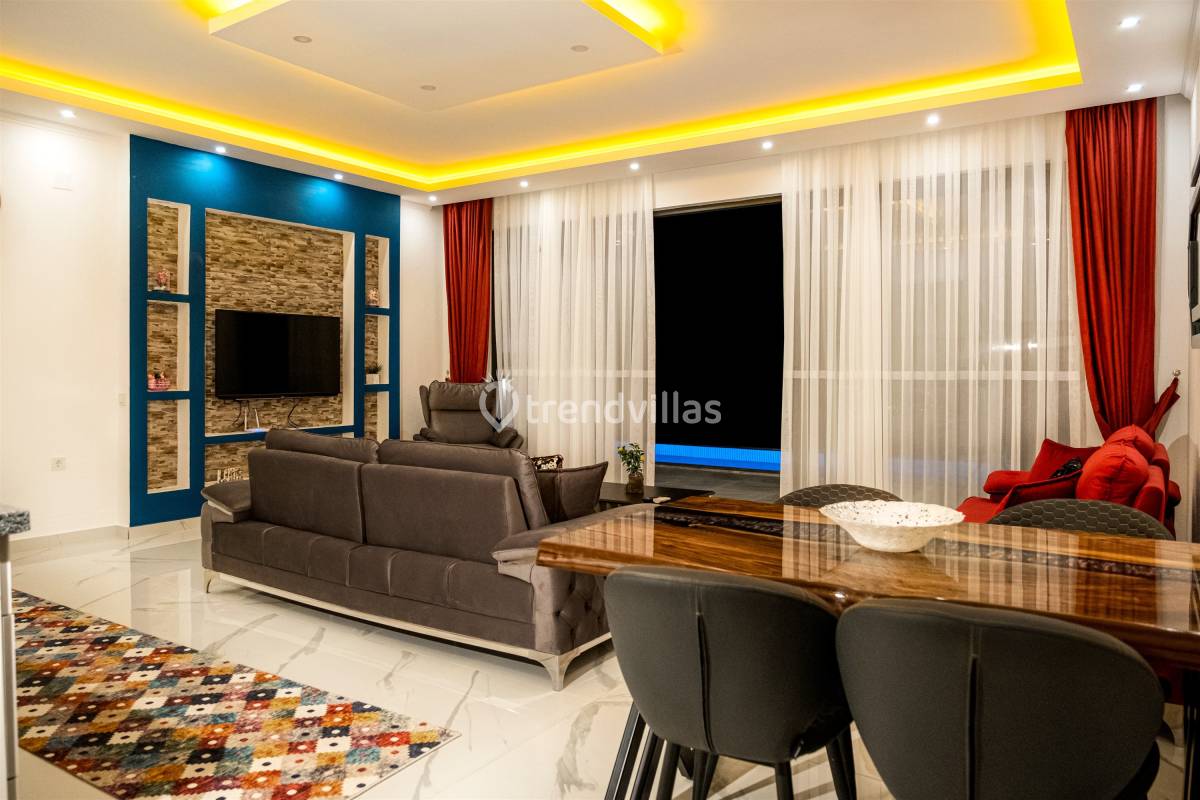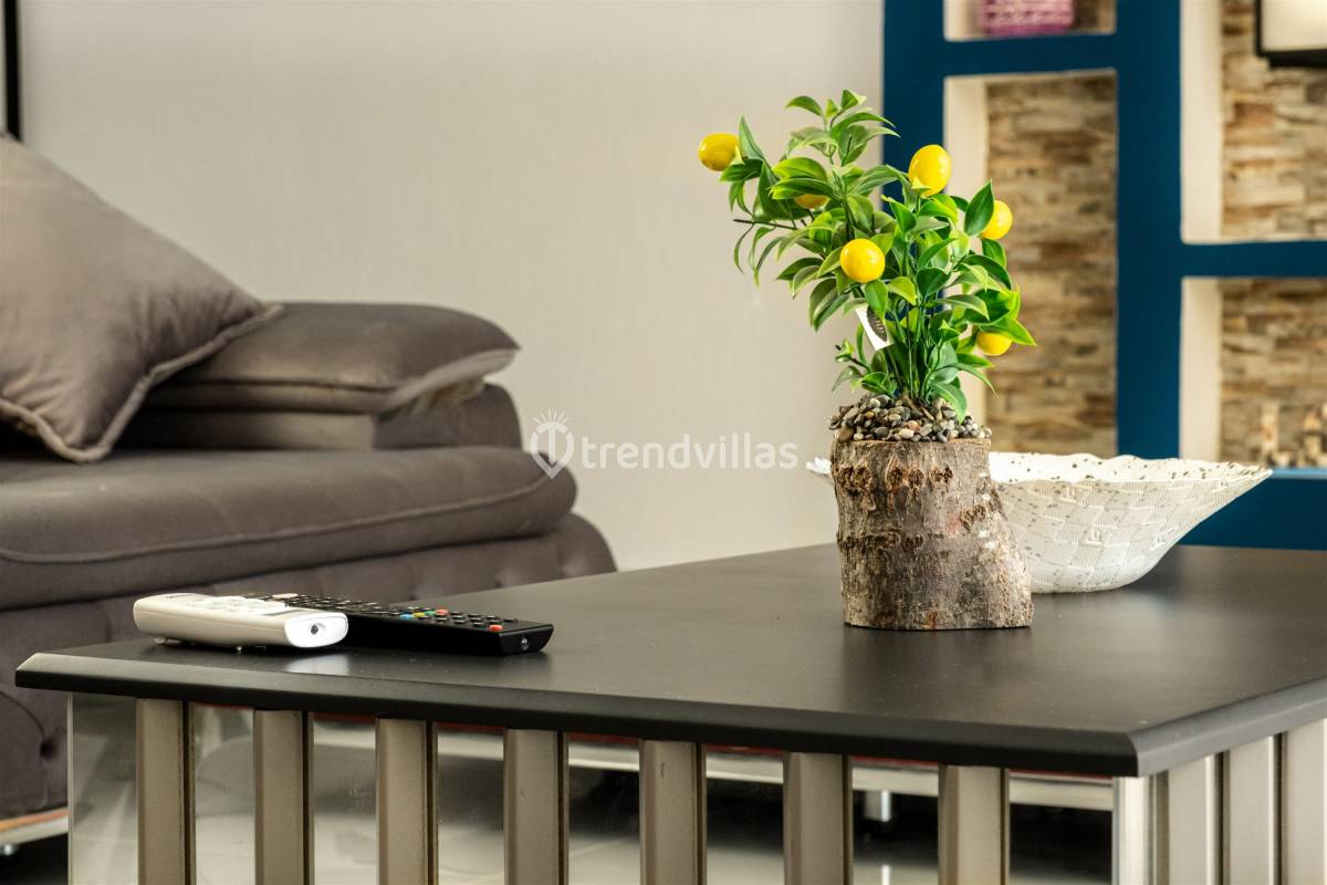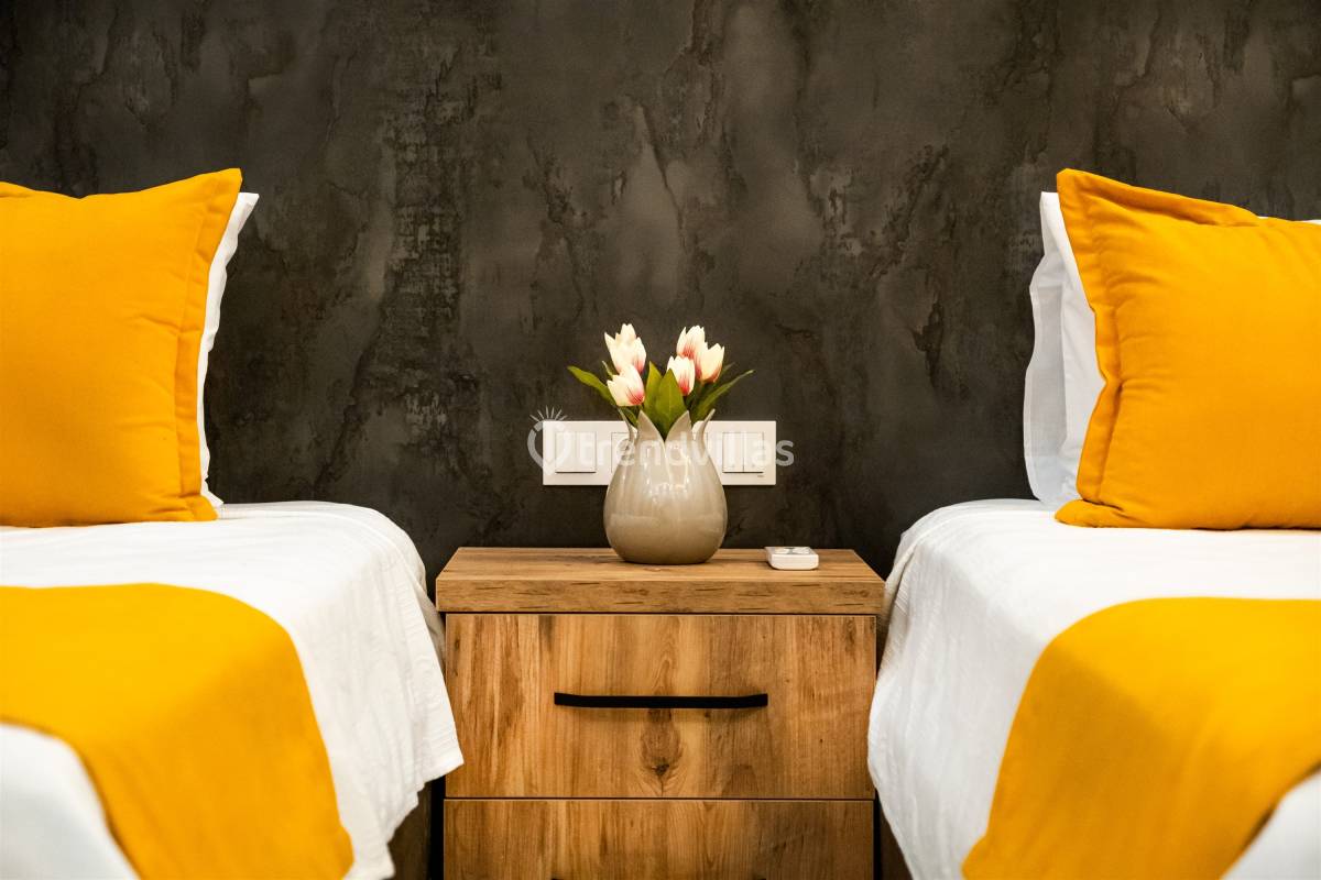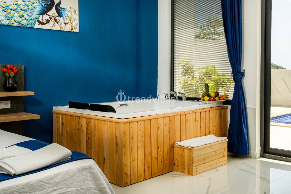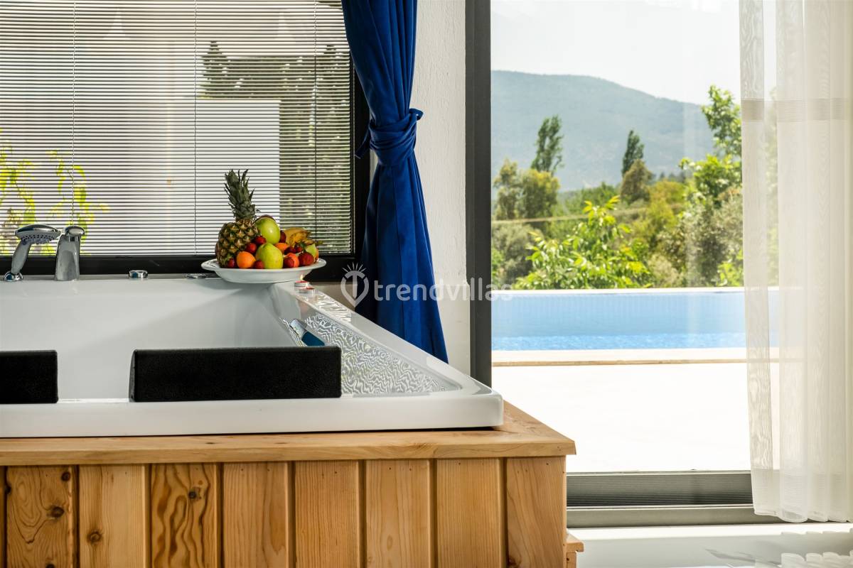 Villamızda iki yatak odası ve iki banyo bulunmaktadır. Birinci odada çift kişilik yatak, klima, jakuzi ve banyo; İkinci odada ise iki tek kişilik yatak, klima ve banyo bulunmaktadır. Salon içerisinde oturma grubu, televizyon, klima ve mutfak yer almaktadır.